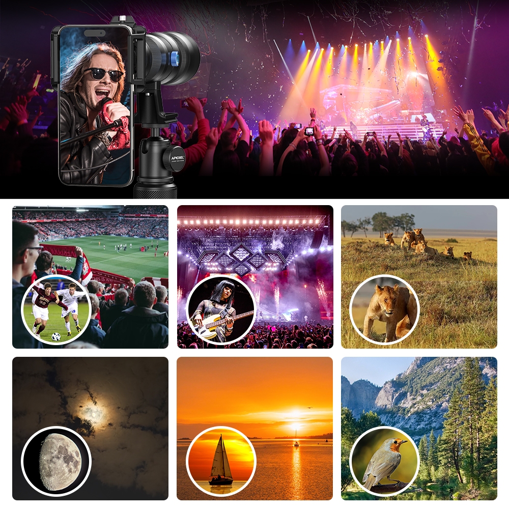 APEXEL 20-60X Super Zoom Lens, Phone Telephoto Lens Kit, HD Phone Lens with 34.6-inch Tripod, Phone Camera Photography Accessory