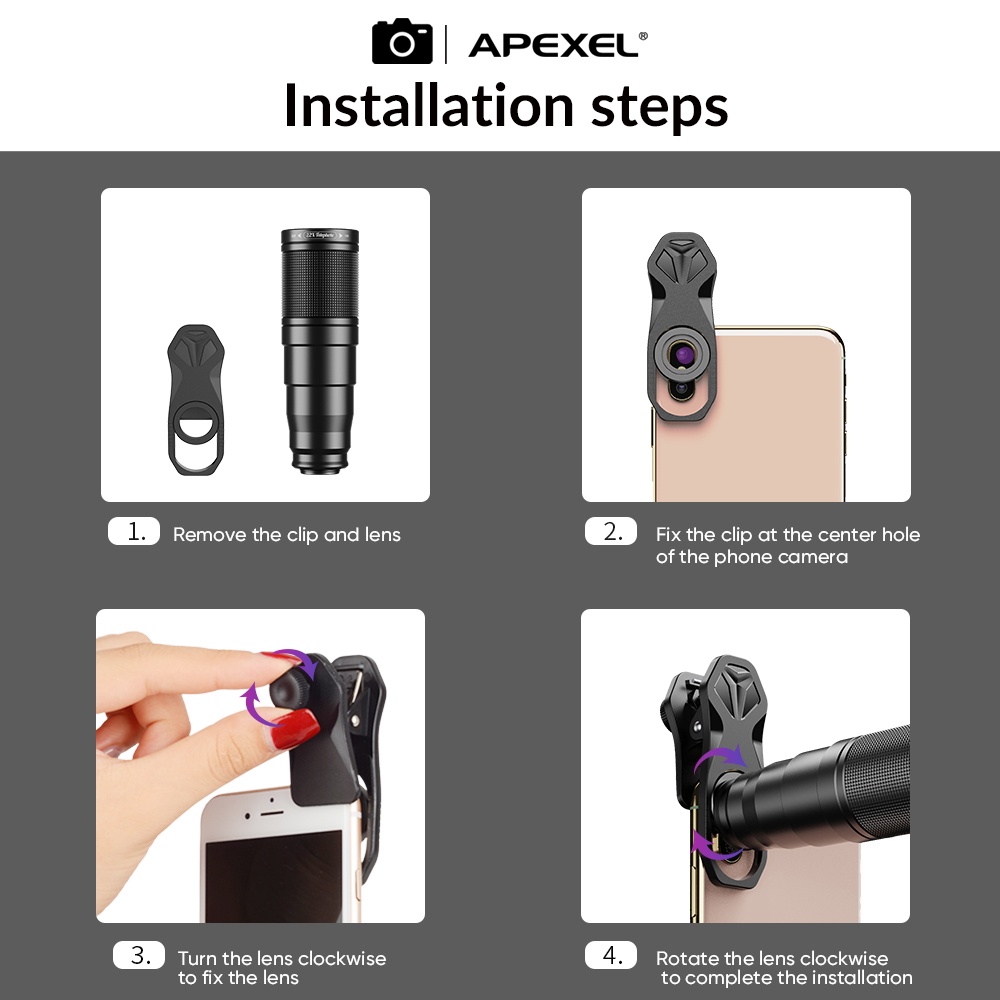 APEXEL 22x telephoto lens10 in 1 Lens Set Phone Camera Lens Kit Fish Eye Wide Macro Star Filter CPL Lenses for smartphone for concert