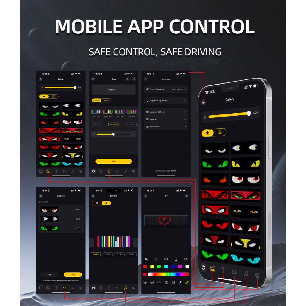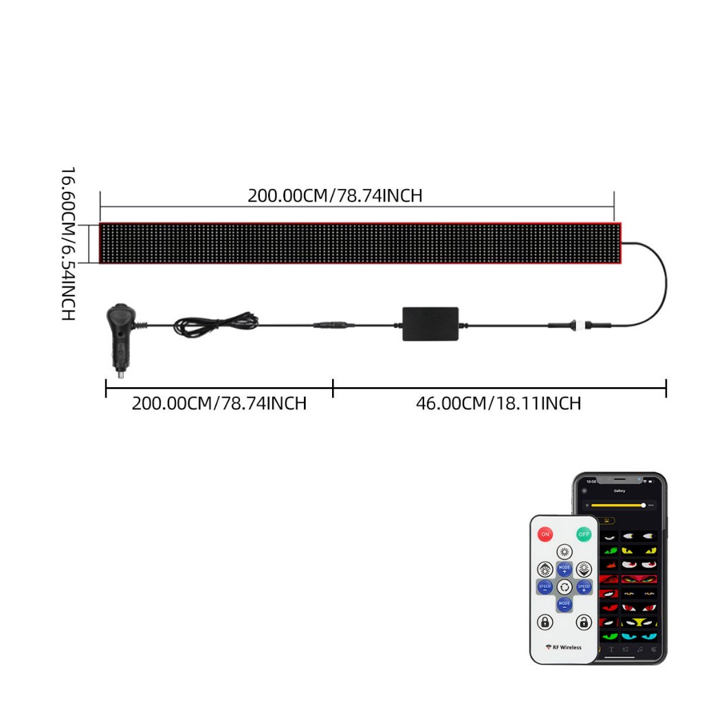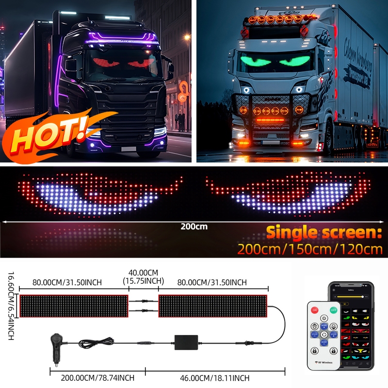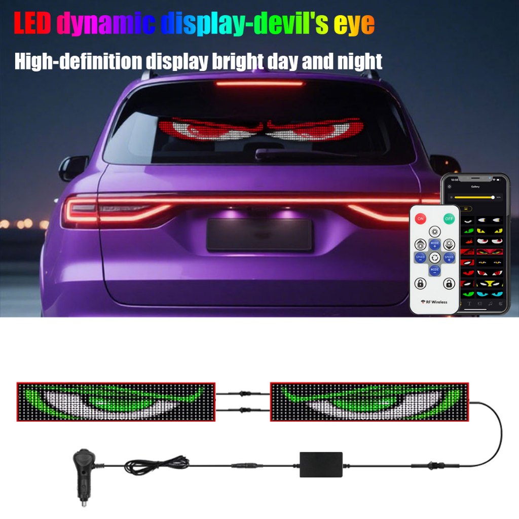 APP Remote Control Truck Devil Eye LED Pixel Panel Light 12-24V DIY Text Lighting Scrolling Foldable
