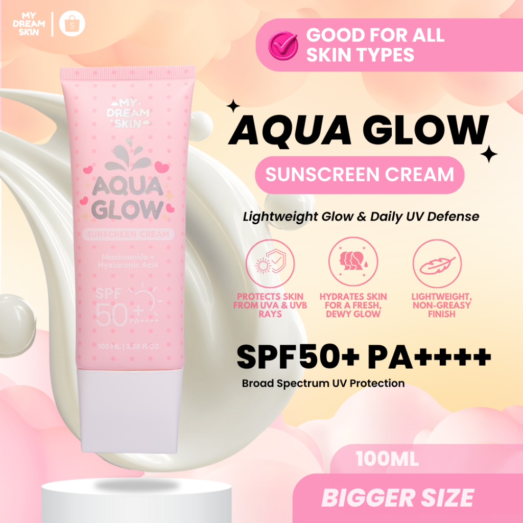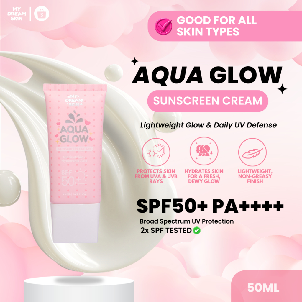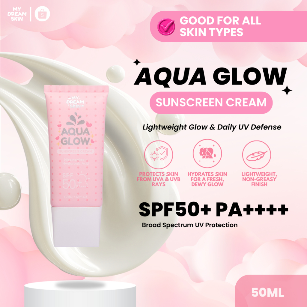 Aqua Glow Sunscreen Cream SPF50+ PA++++ | Lightweight Hydrating Sunscreen with Niacinamide