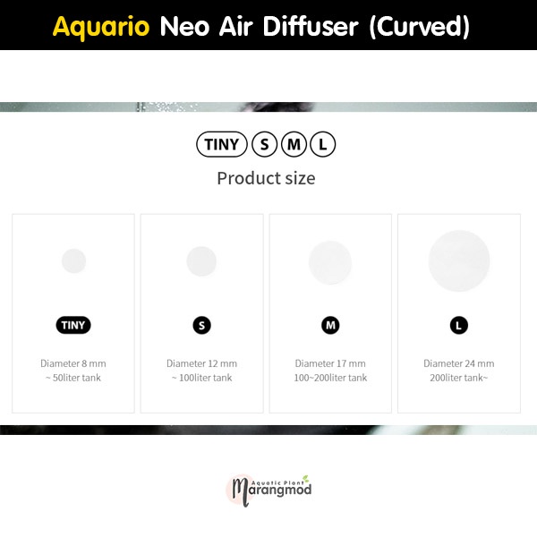 AQUARIO NEO AIR DIFFUSER Curved Oxygen Diff Head Model Glass Edge Trim No Need To Use Silicone Kiss|Marangmod