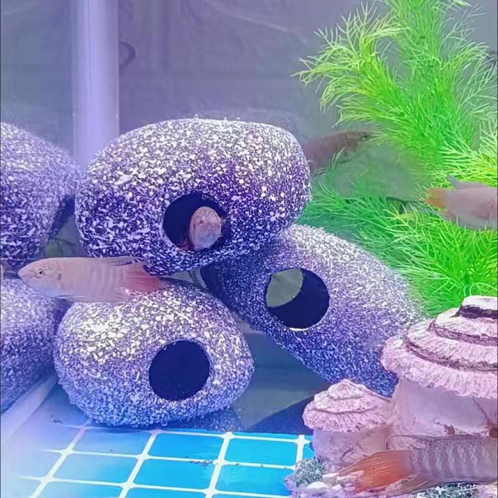 AQUARZOO Aquarium Hiding Cave Stone Hideaway akuarium Decoration Hide Rock Cichlids Betta Hideout Shelter Cave Tunnel Fish Tank Pond Ornament for Short Bream Crayfish Shrimp