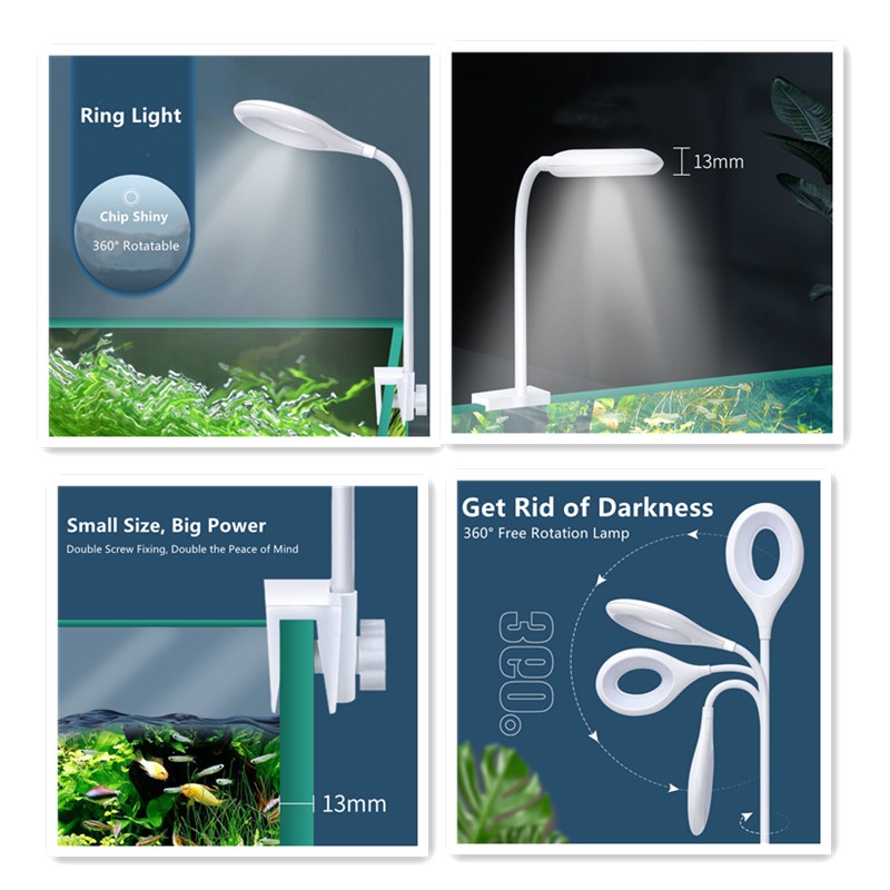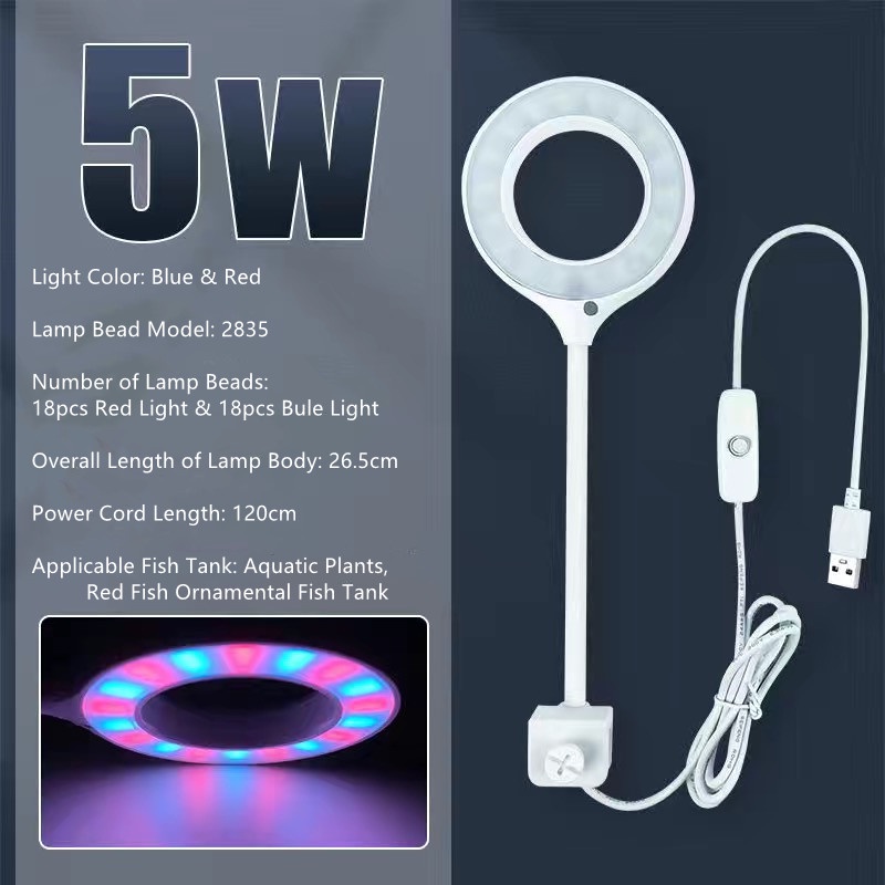 AQUARZOO Clip USB Aquarium LED Light Mini Desktop Lamp Light Flexible Neck Multicolor Tortoise Small Aquarium Fish Tank Wall LED Clip On Light for Aquatic Plant Growing