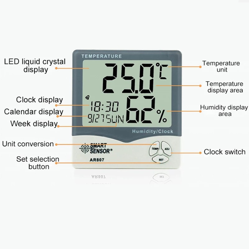 AR807 AR867 Digital Hygrometer Thermometer Humidity Temperature tester Weather Station W/ Calendar & Clock Alarm