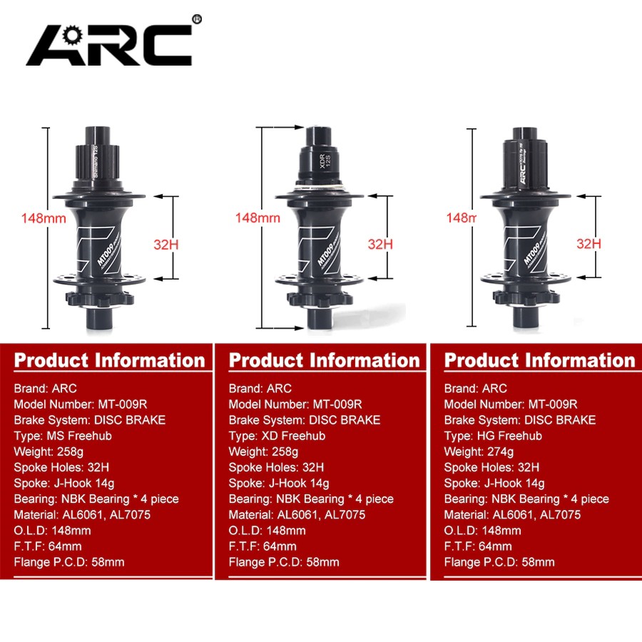 ARC 009 boost MTB Mountain Bike Hub 28 Holes /32 Holes Disk Brake Bicycle Front Rear Hub 11 12 Speed Thru Xd Xdr Hg Micro Spline Freehub Boost Hub 148mm