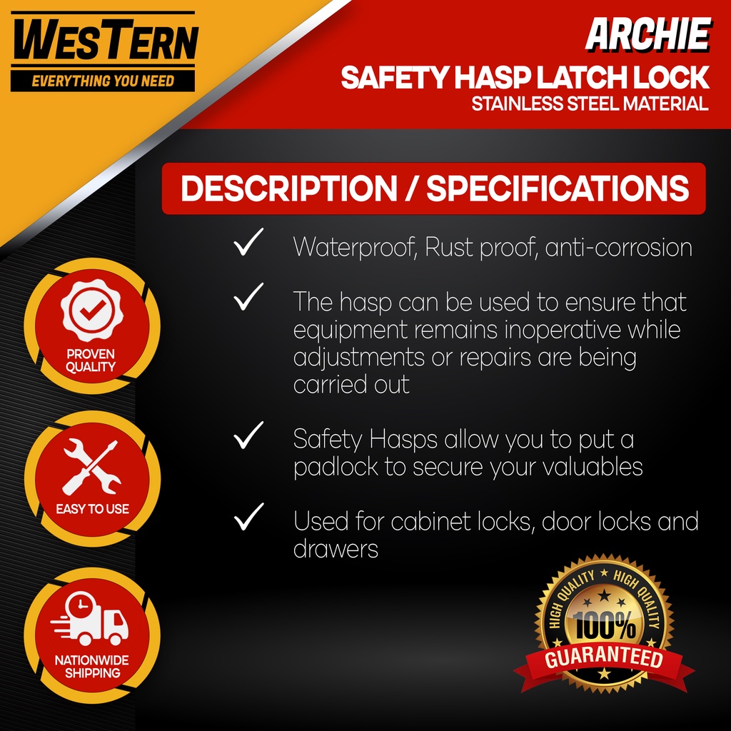 ARCHIE Safety Hasp Latch Lock Stainless Steel with Screws