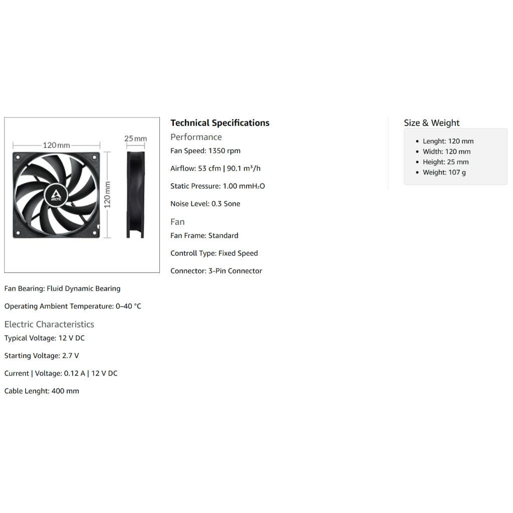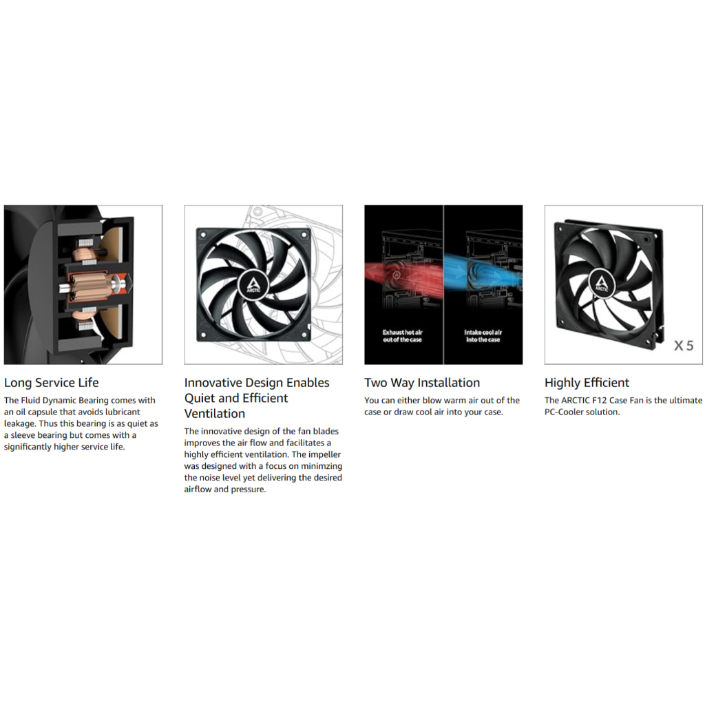 ARCTIC F12 PWM PST Computer Case Fan 120mm Fan PC Case Fan PWM Daisy Chain 250-1350 RPM Value Pack