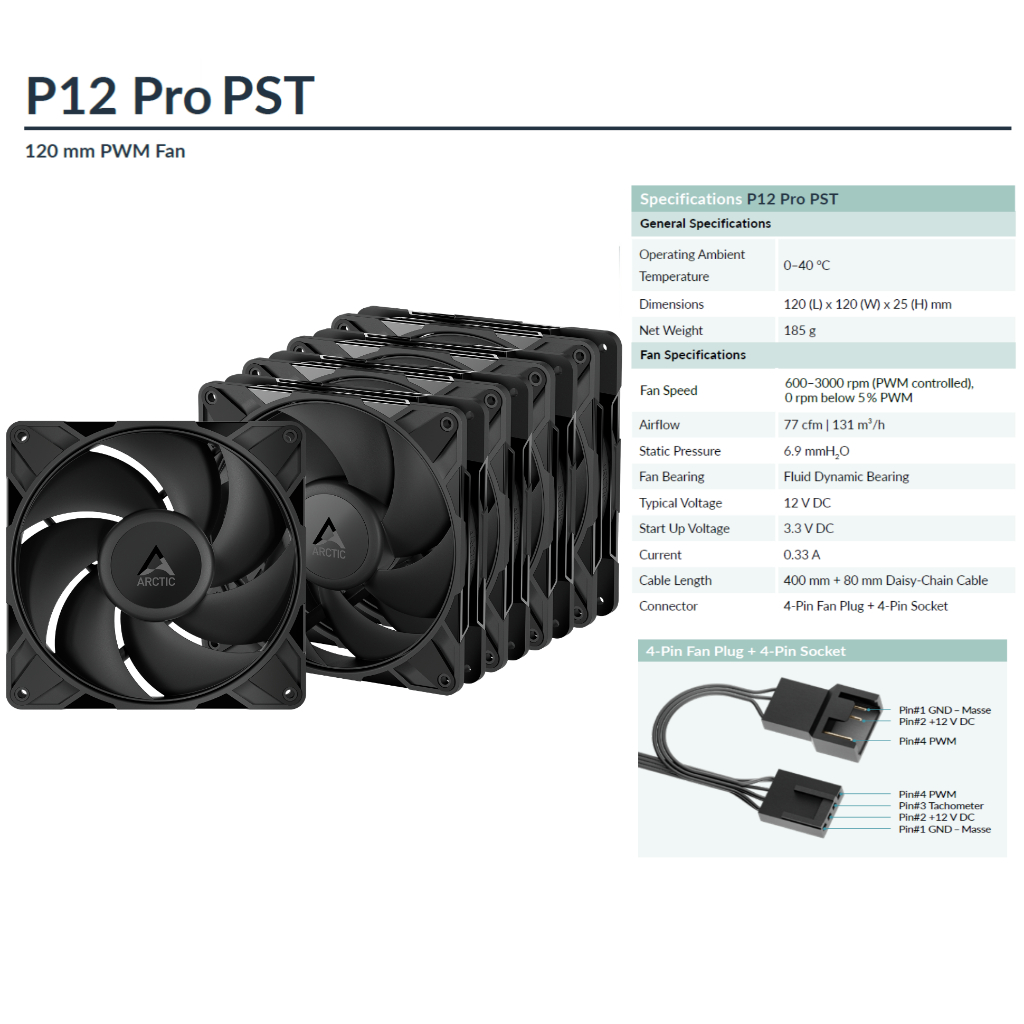 ARCTIC P12 Pro PST - 5 Pack P14 Pro PST - 5 Pack 120/140mm Computer Case Radiator Fan Daisy Chain