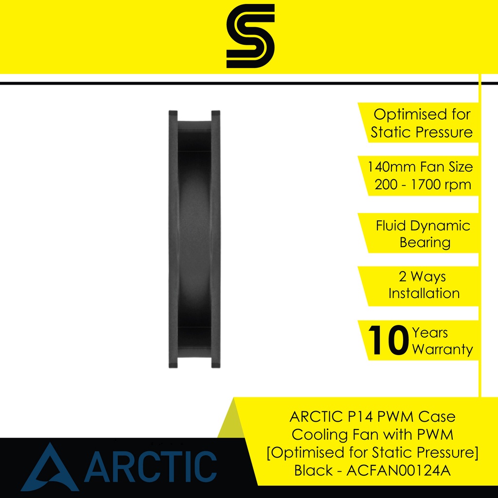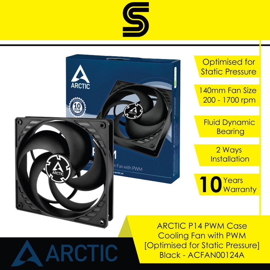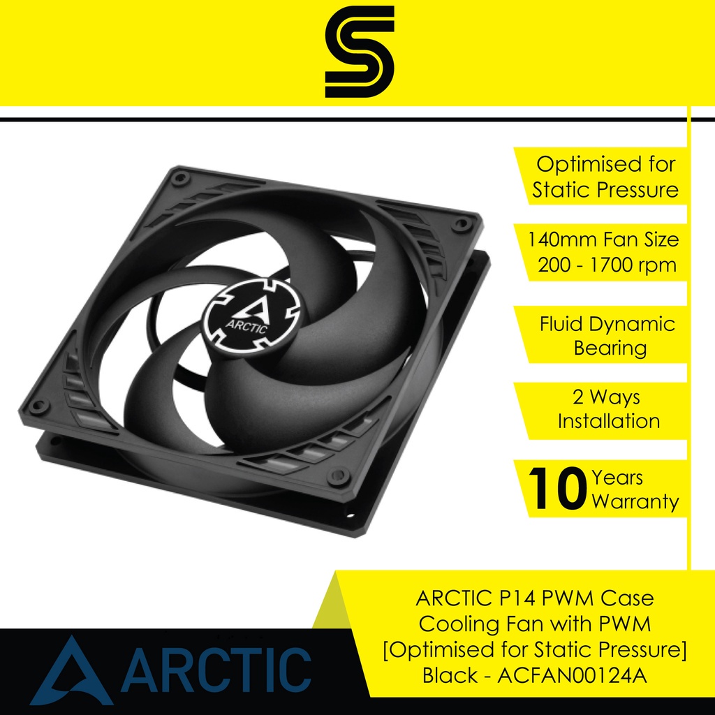 ARCTIC P14 PWM Case Cooling Fan with PWM [Optimised for Static Pressure] - Black - ACFAN00124A