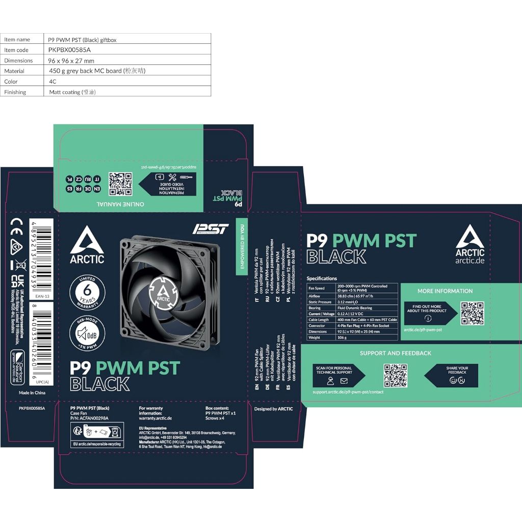 ARCTIC P9 PWM PST Computer Fan 90mm Daisy Chain 3000 RPM High Performance High Quality PC Fans