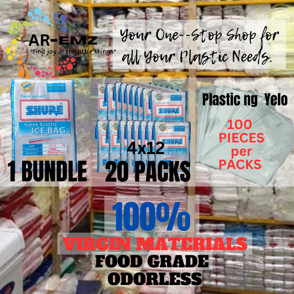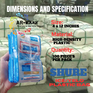 AREMZ Shure Plastic Ng Yelo 4x12" Tough Clean Bags for Ice Tubig & Coin Storage in Sari-Sari Stores