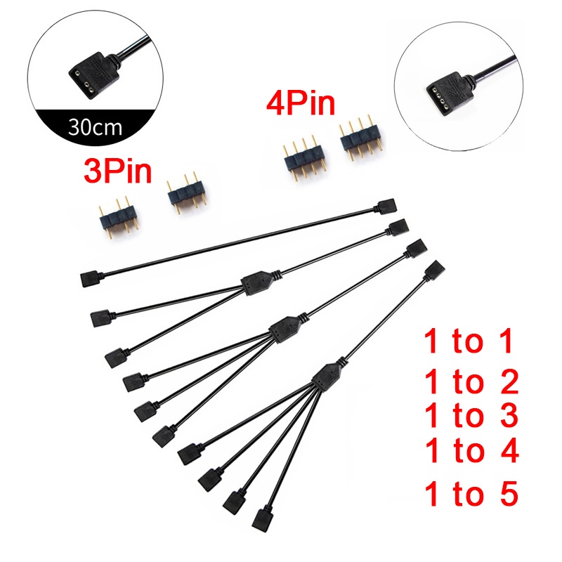 ARGB 5V 3Pin Extension Cable Adapter 30cm 1 to 1 2 3 4 5 12v 4pin RGB Splitter Cable for MSI A SUS ASRock AURA LED