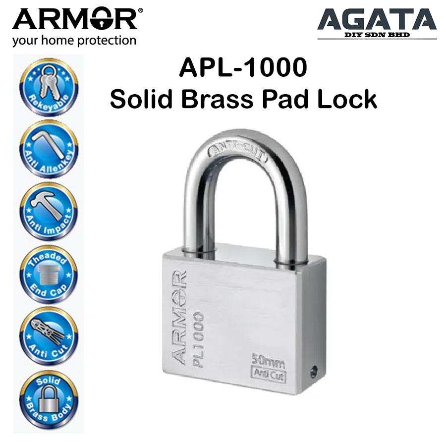 ARMOR Solid Brass Padlock (40mm/ 50mm) APL-1000 Anti Cut Anti Impact Anti Allen Key Solid Brass Body Threaded End Cap