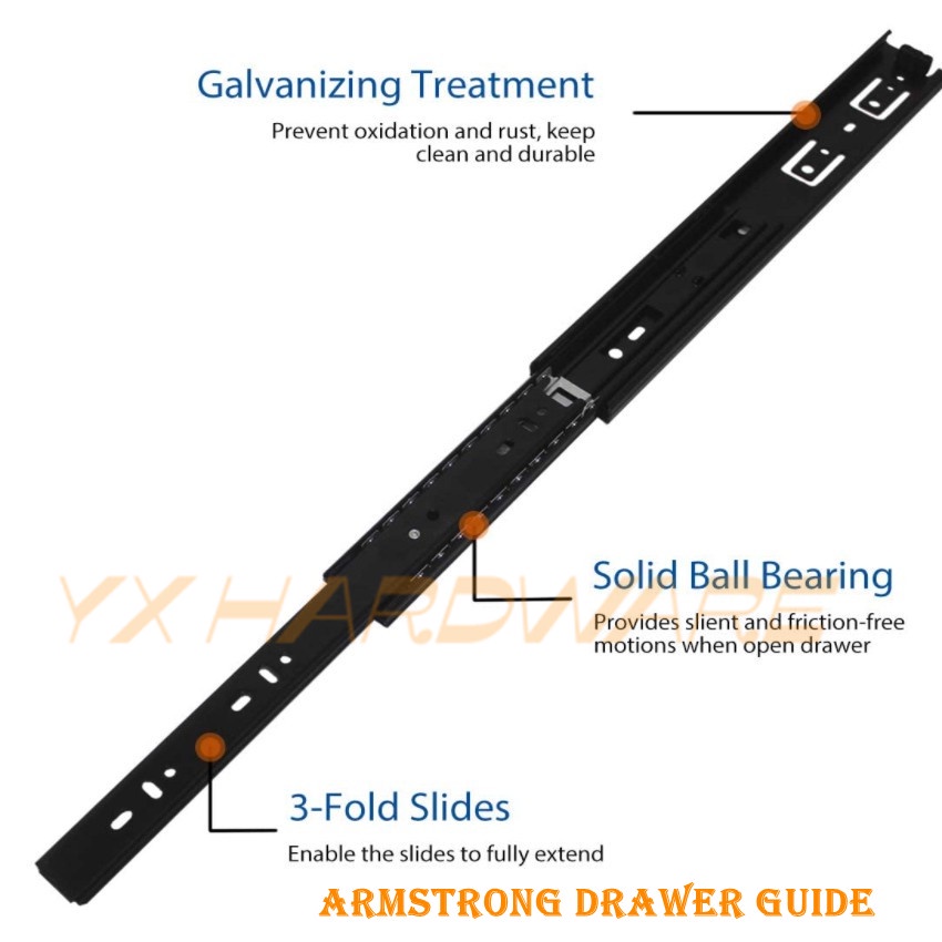 ARMSTRONG Drawer Guide Full Extension Steel Drawer Ball Bearing 3 Fold Heavy Duty 1 SET