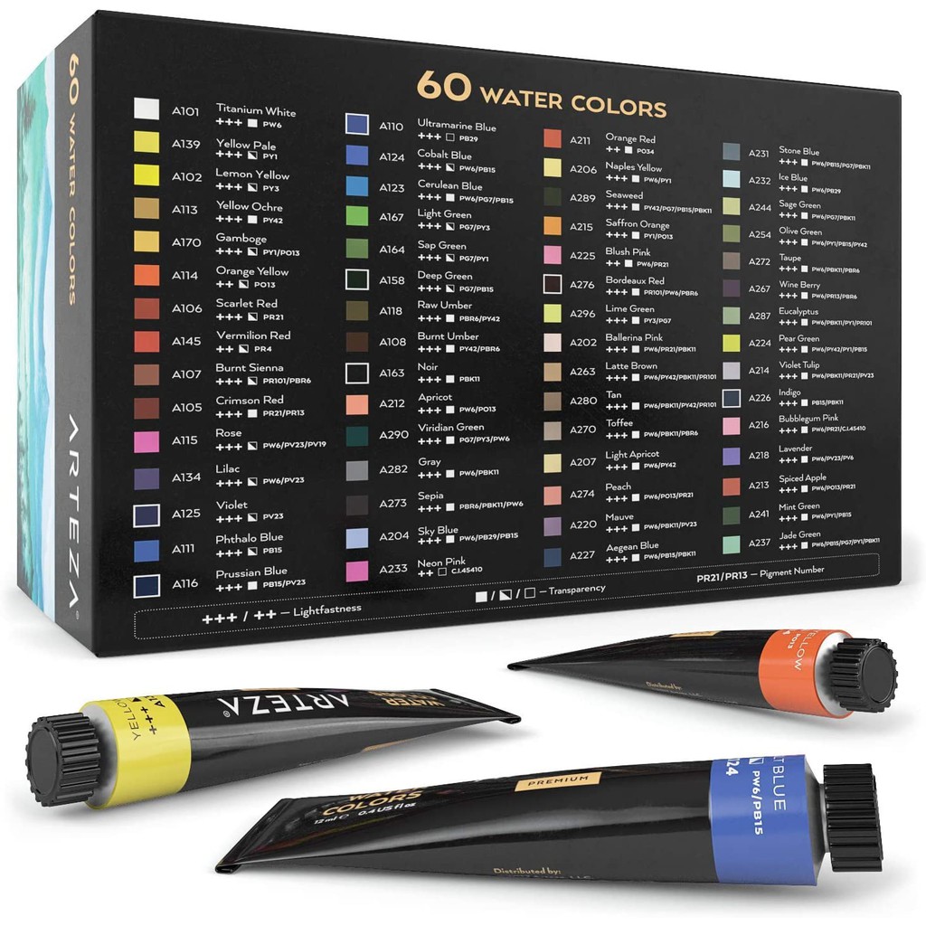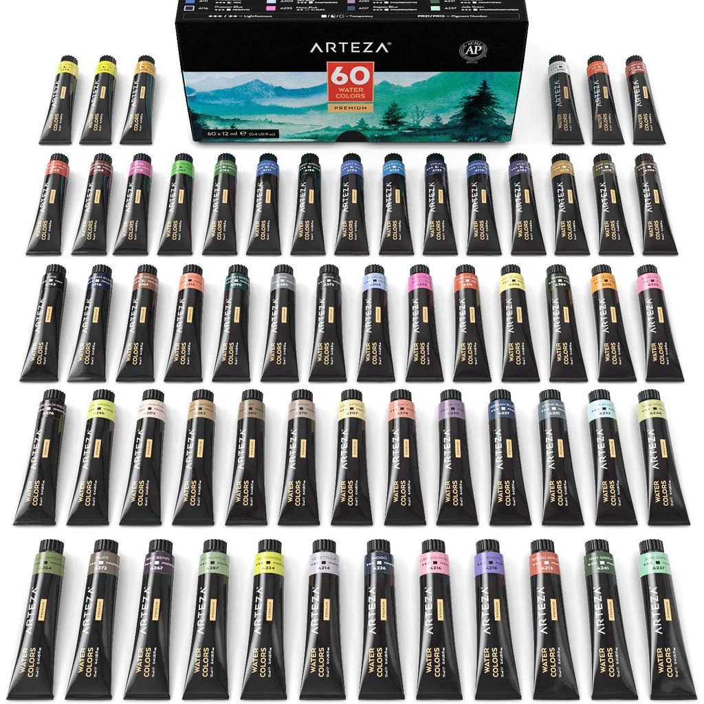 ARTEZA Premium Watercolor Paint Set 60 tubes 12ml each