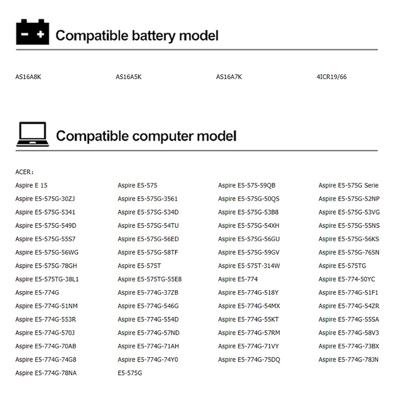 AS16A5K AS16A7K AS16A8K Battery For Acer Aspire E15 E5-475G 523G 553G 575G 774G E5-575