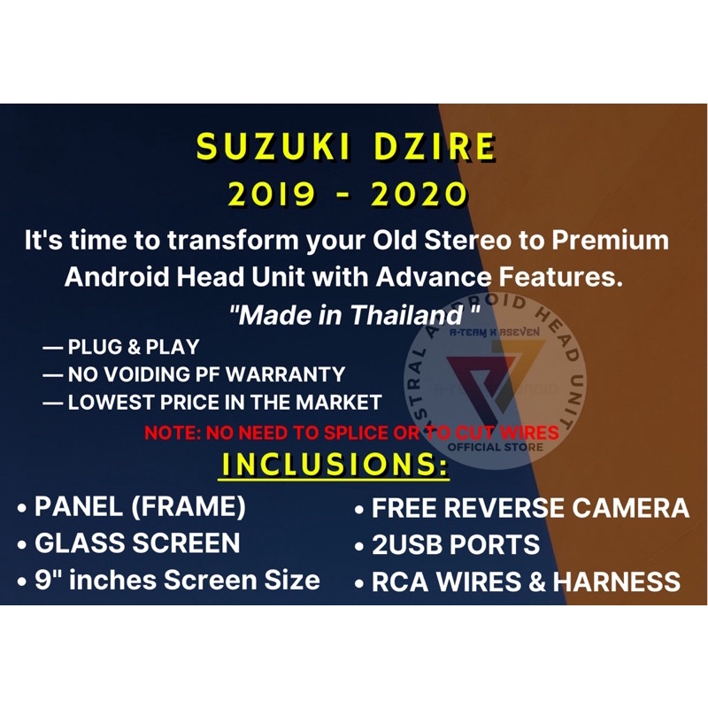 ASTRAL 2GB+32GB SUZUKI DZIRE 2019-2022 ANDROID HEAD UNIT