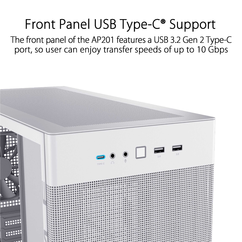 ASUS AP201 Quasi-Filter Mesh Tempered Glass mATX Casing - USB Type C | Tool-Free Side Panel (White)