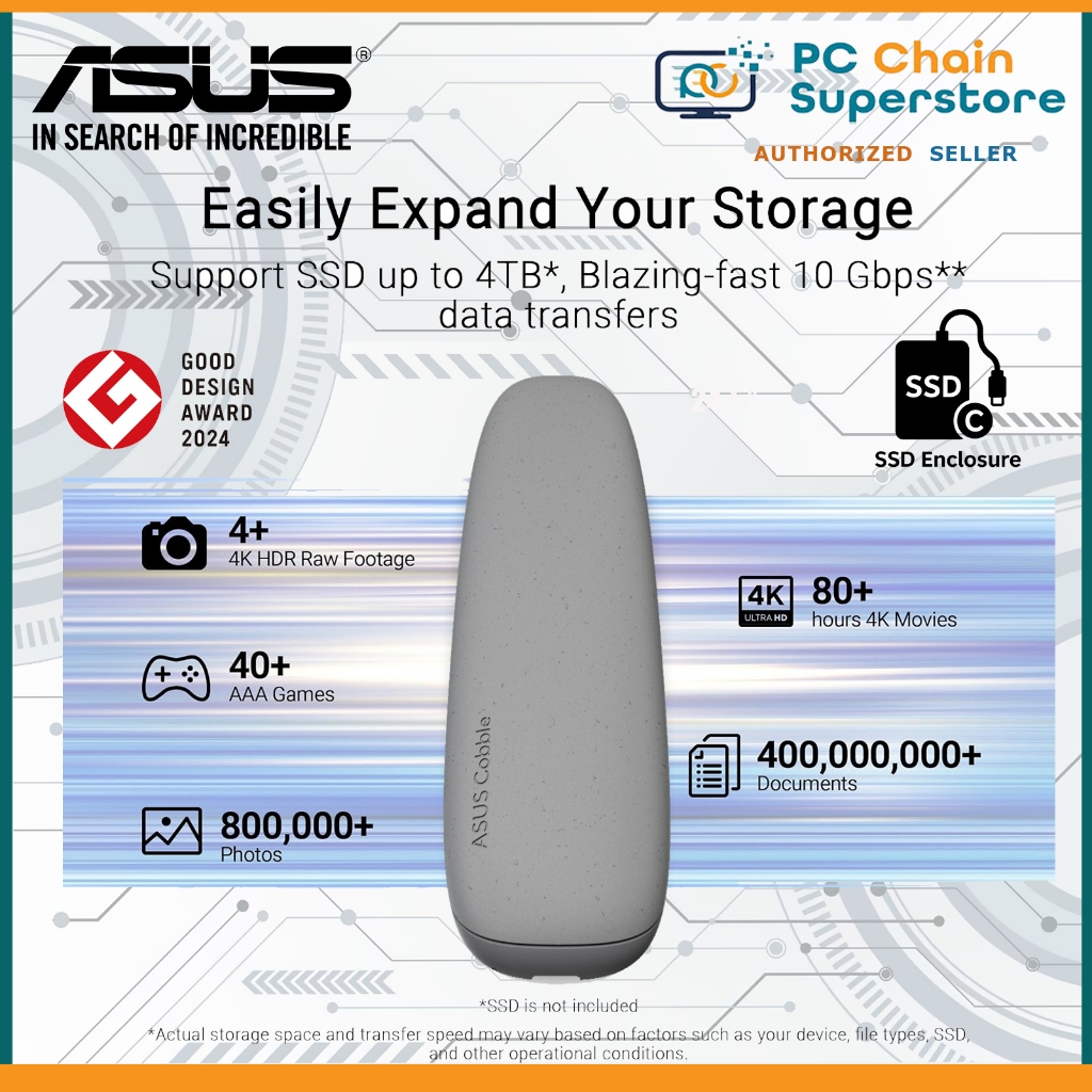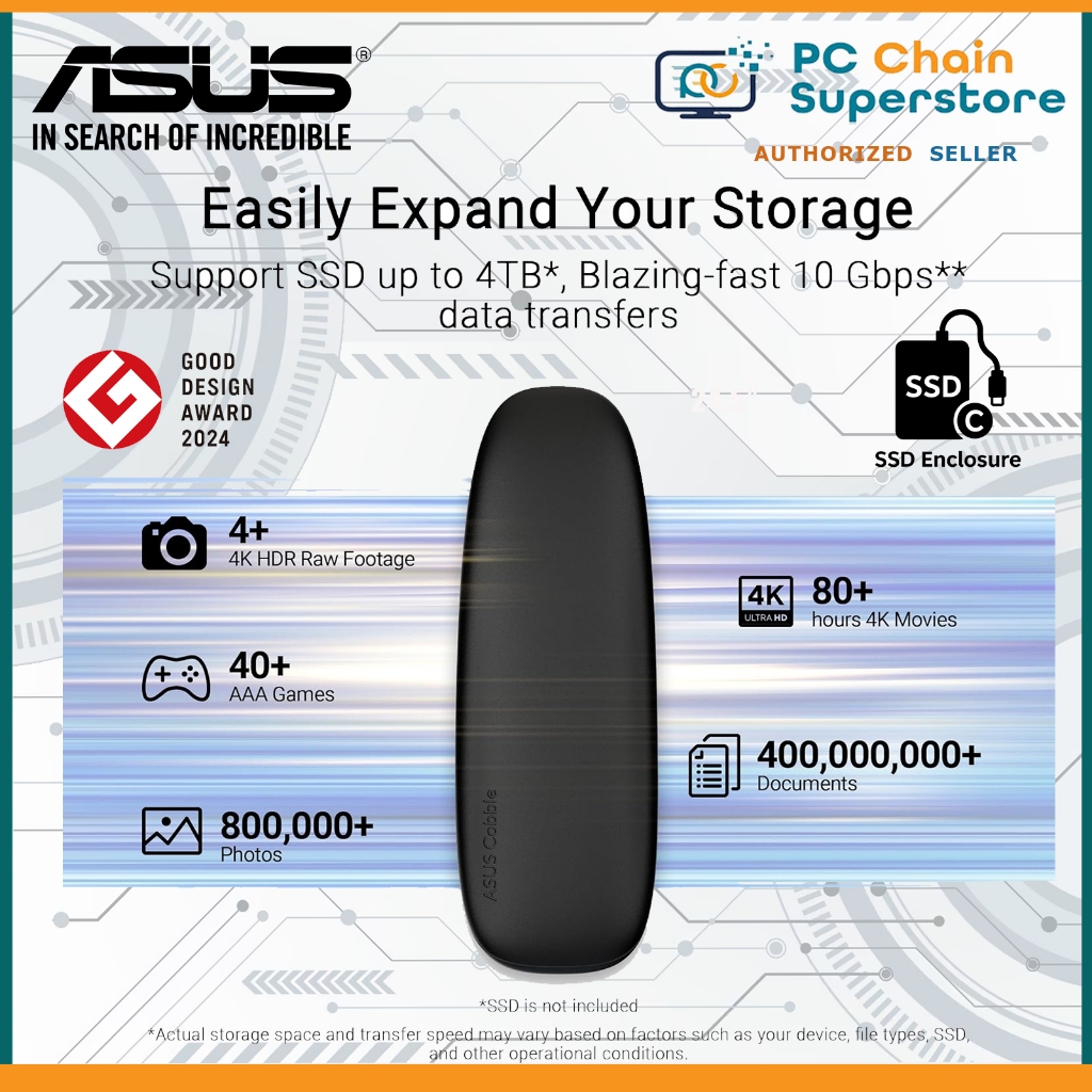 ASUS Cobble USB-C 3.2 Gen 2 External SSD Enclosure - up to 10 Gbps Transmission | IP55 Water & Dust
