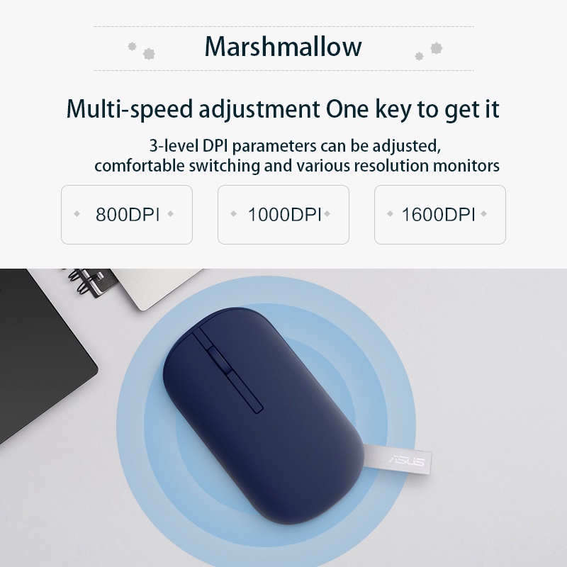 ASUS Marshmallow Mouse 2.4GHz Bluetooth Dual-Mode Wireless Mouse Cute Portable for Laptop, PC, Ipad