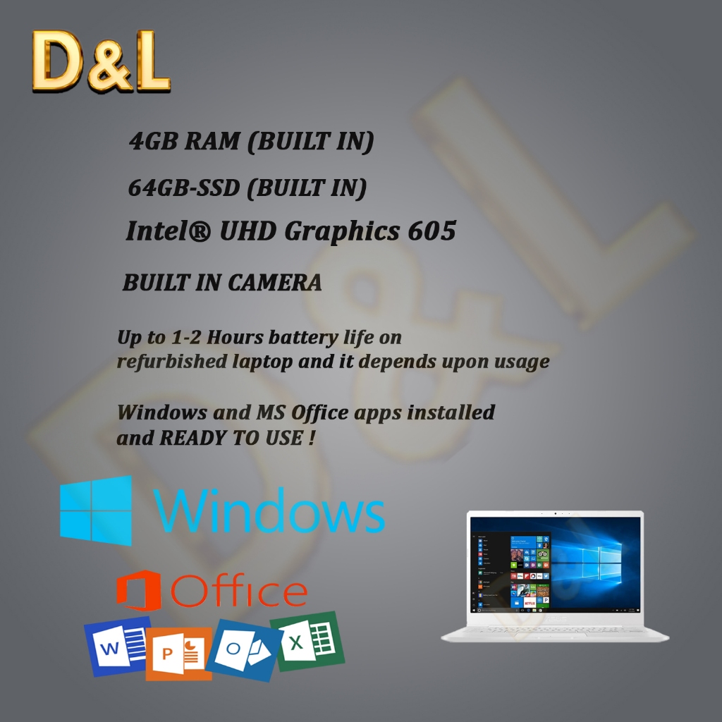 ASUS PENTIUM SILVER 8TH GEN 4GB-64GB BUILT IN [[REFURBISHED]] READY TO USE OFFICE APPS AND WINDOWS