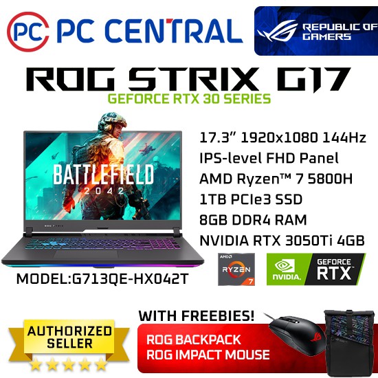 ASUS Rog Strix G17 Gaming Laptop 17.3" 144hz AMD Ryzen 7 5800h 1tb SSD Rtx 3050ti