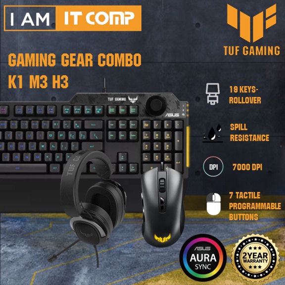 ASUS TUF Gaming Gear Combo H3 7.1 Gaming Headset, P305 M3 Mouse and RA04 K1 RGB keyboard