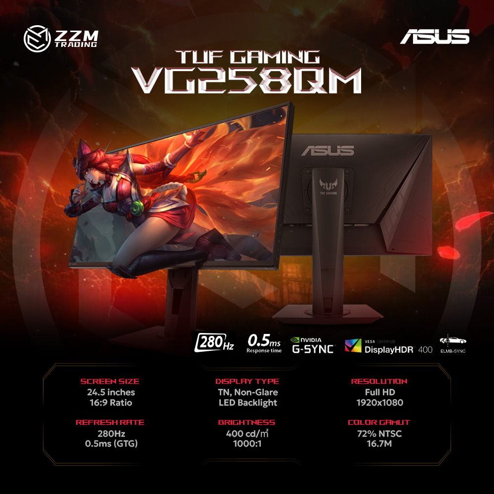 ASUS TUF Gaming VG258QM/VG259QM/VG249QM5A 24.5" 16:9 Full-HD 280Hz Fast IPS HDR400 ZZM Trading