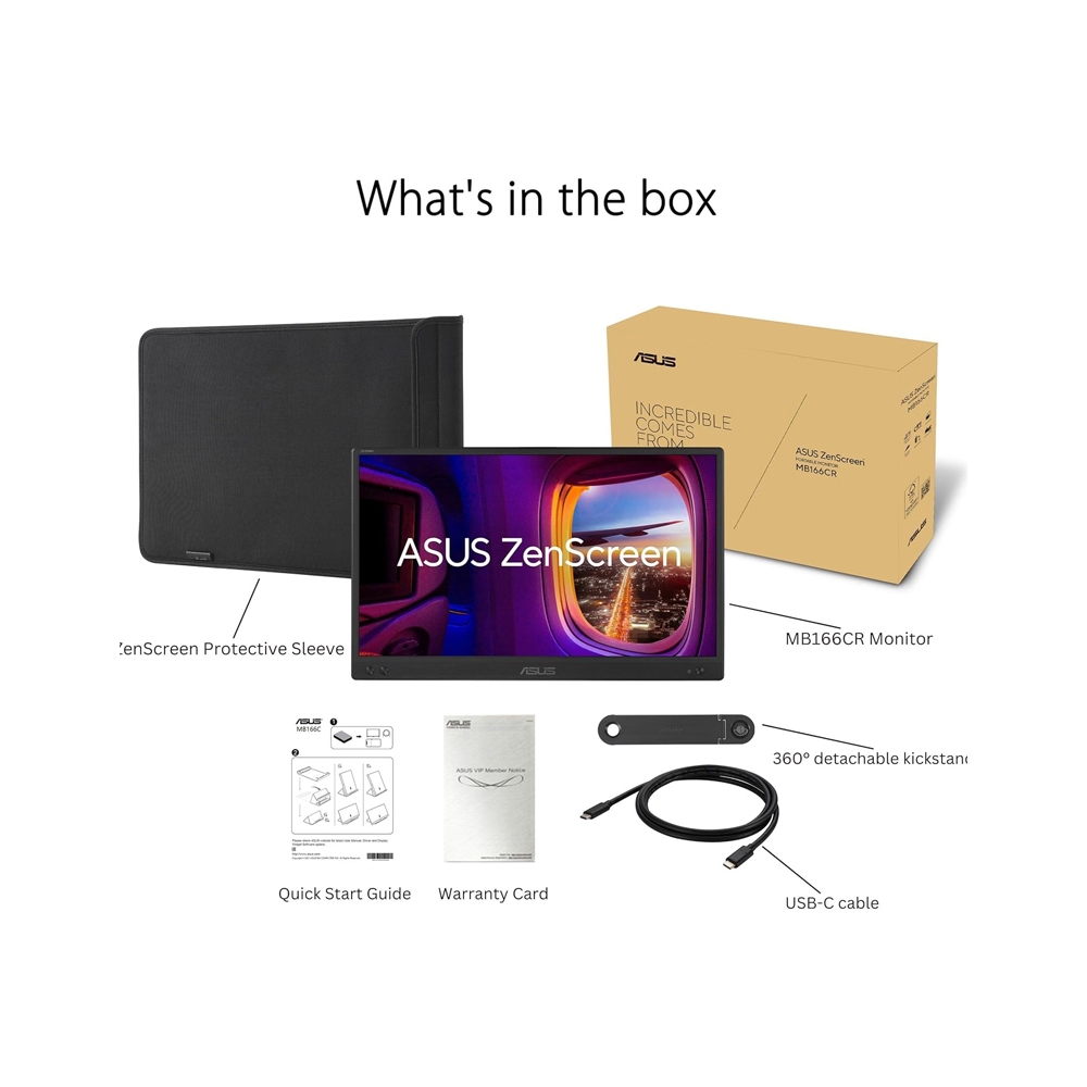 ASUS ZenScreen MB166CR Portable Monitor- 16 inch (15.6 inch viewable) | Full HD | IPS | USB Type-C
