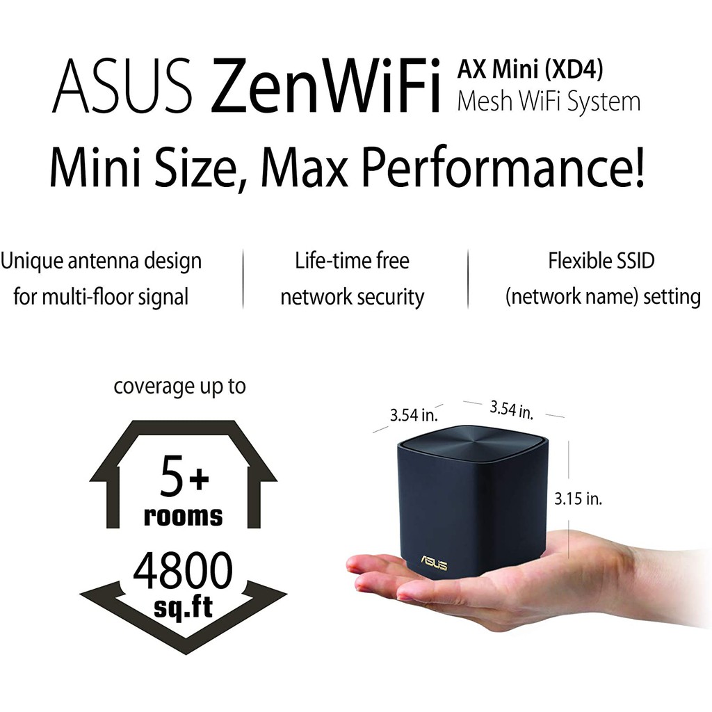 ASUS ZenWiFi AX Mini XD4 2-Pack AX1800 Whole Home Mesh Wifi System (1201+574Mbps, 11ax, Dual-Band)
