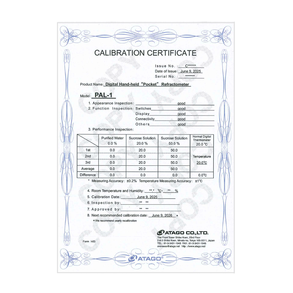 ATAGO Digital Hand-held Refractometer - PAL-1 with Free Calibration Certificate
