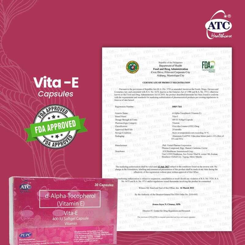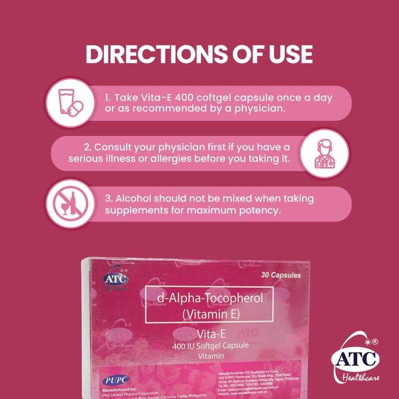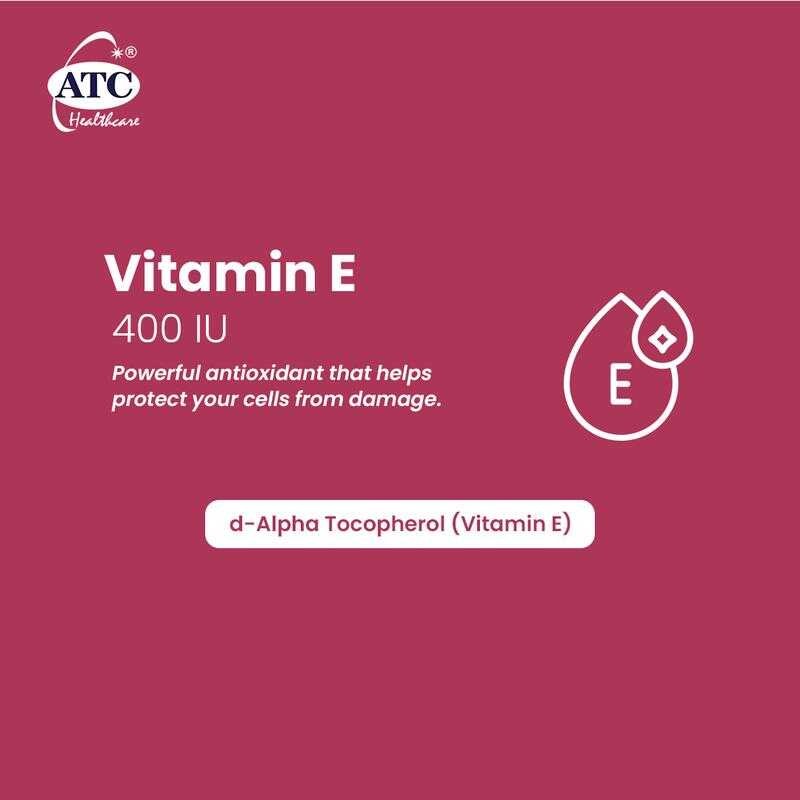 ATC D-Alpha-Tocopherol Vitamin E 400 IU Softgel Capsules 30'S Healthcare Supplement For Daily Use 3B