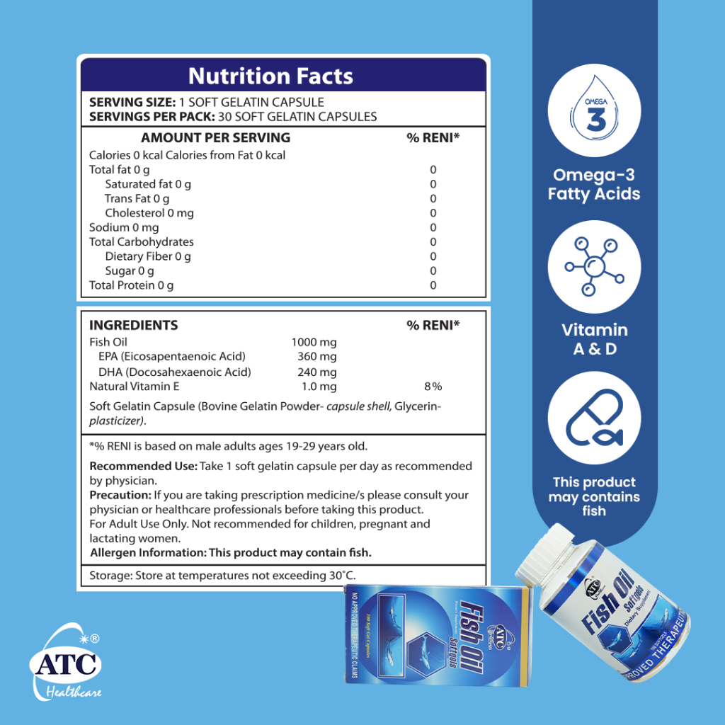 ATC Fish Oil 100's Omega 3 Health Supplements High Purity Soft Capsules Heart Brain and Eye Health