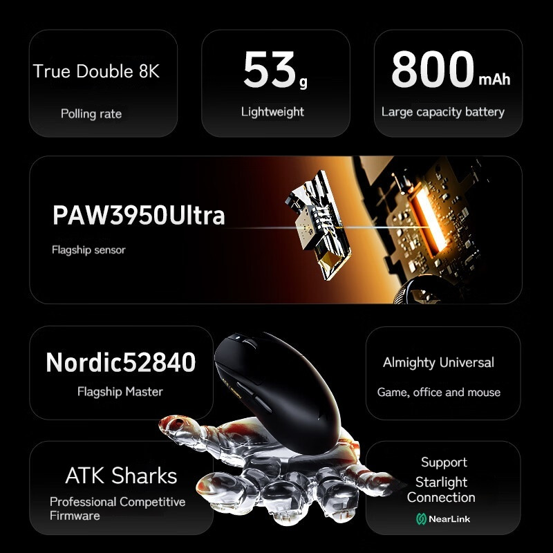 ATK Dragonfly A9 Plus/Ultra Wireless E-sports Gaming Mouse Ultra-lightweight Tri-mode PAW3395/3950 Ultra Dual 8K Ergonomic Mice