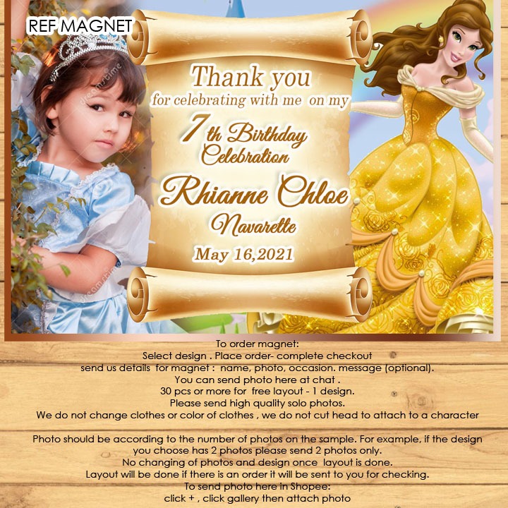 ATM 2R Ref Magnet Giveaway Princess Theme Rapunzel Snowite Mermaid Party MAgnets Baptism Birthday