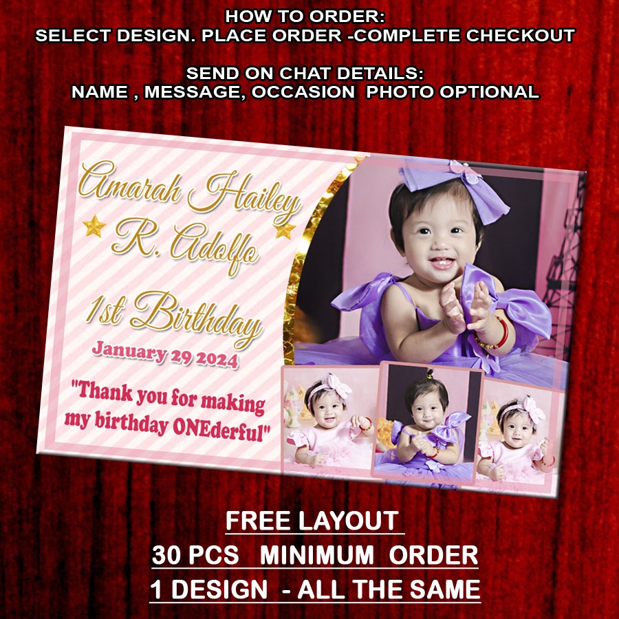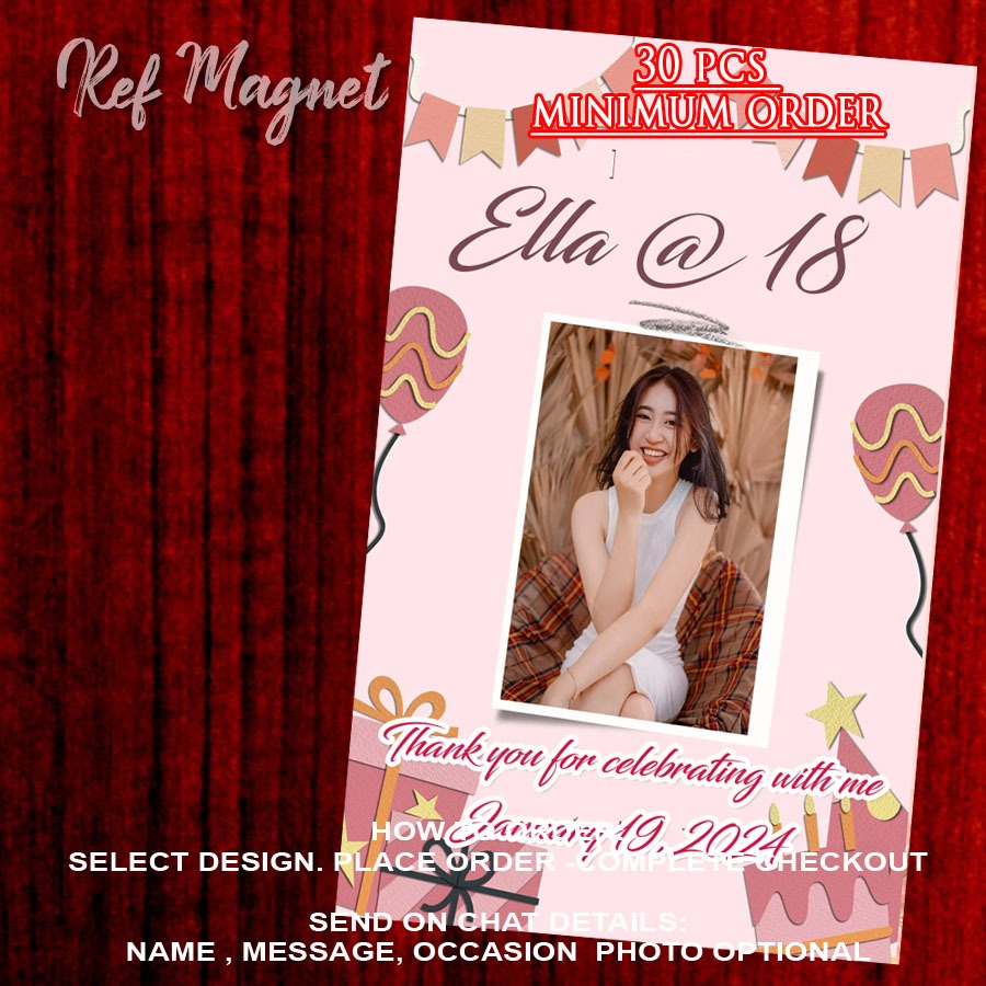 ATM Size Ref Magnet Pink theme Personalized Magnets Baptism Birthday MINIMUM OF 30 PCS