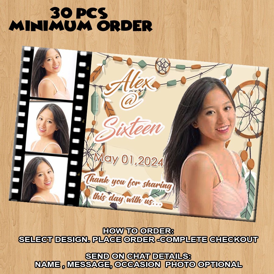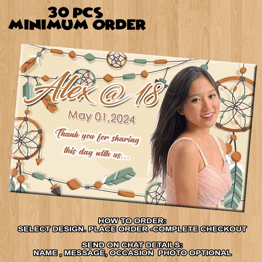 ATM size Personalized Ref Magnets BOHO Brown Bohemian Theme Any Age for Birthday Debut Wedding