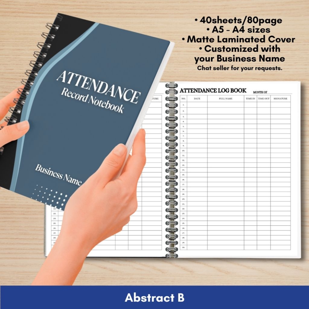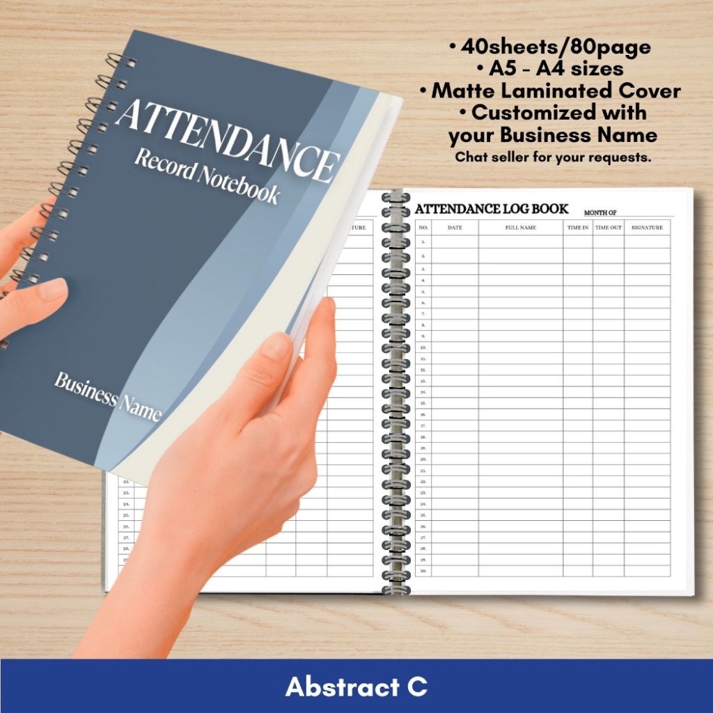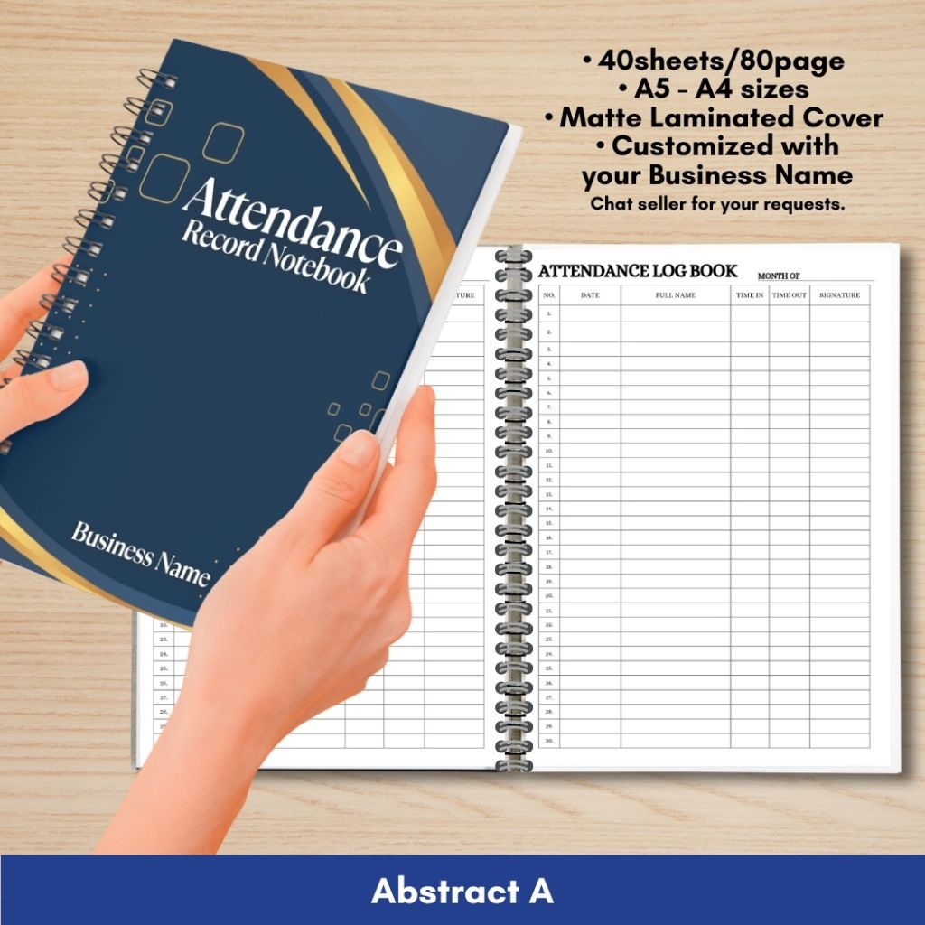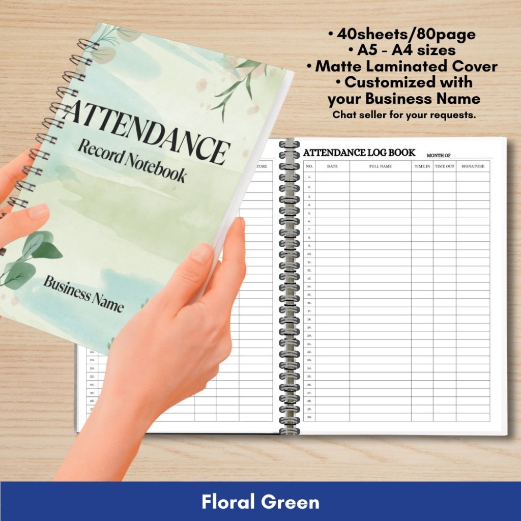 ATTENDANCE RECORD NOTEBOOK for Business/Freelancers A5 and A4 size Wire binded Matte Laminated Cover