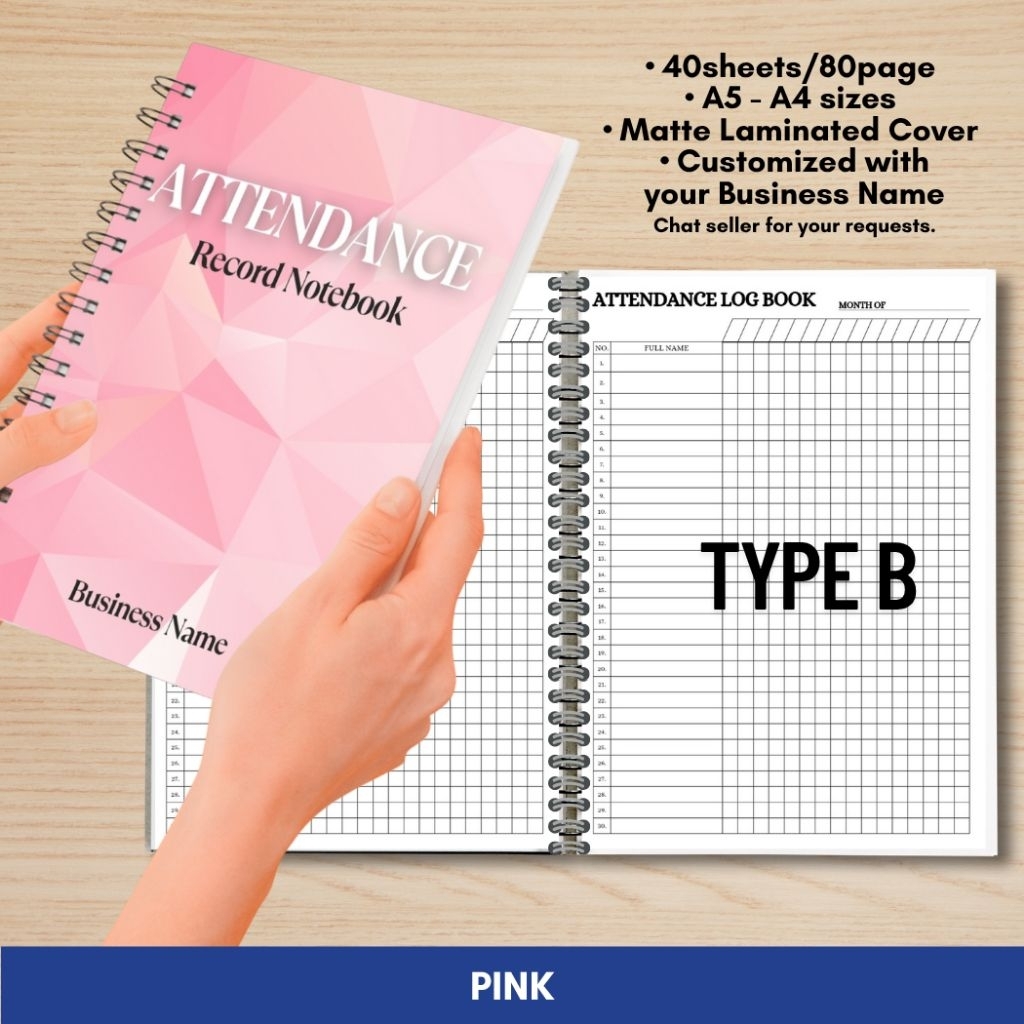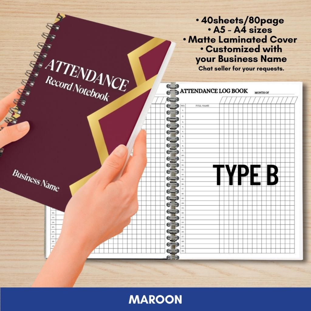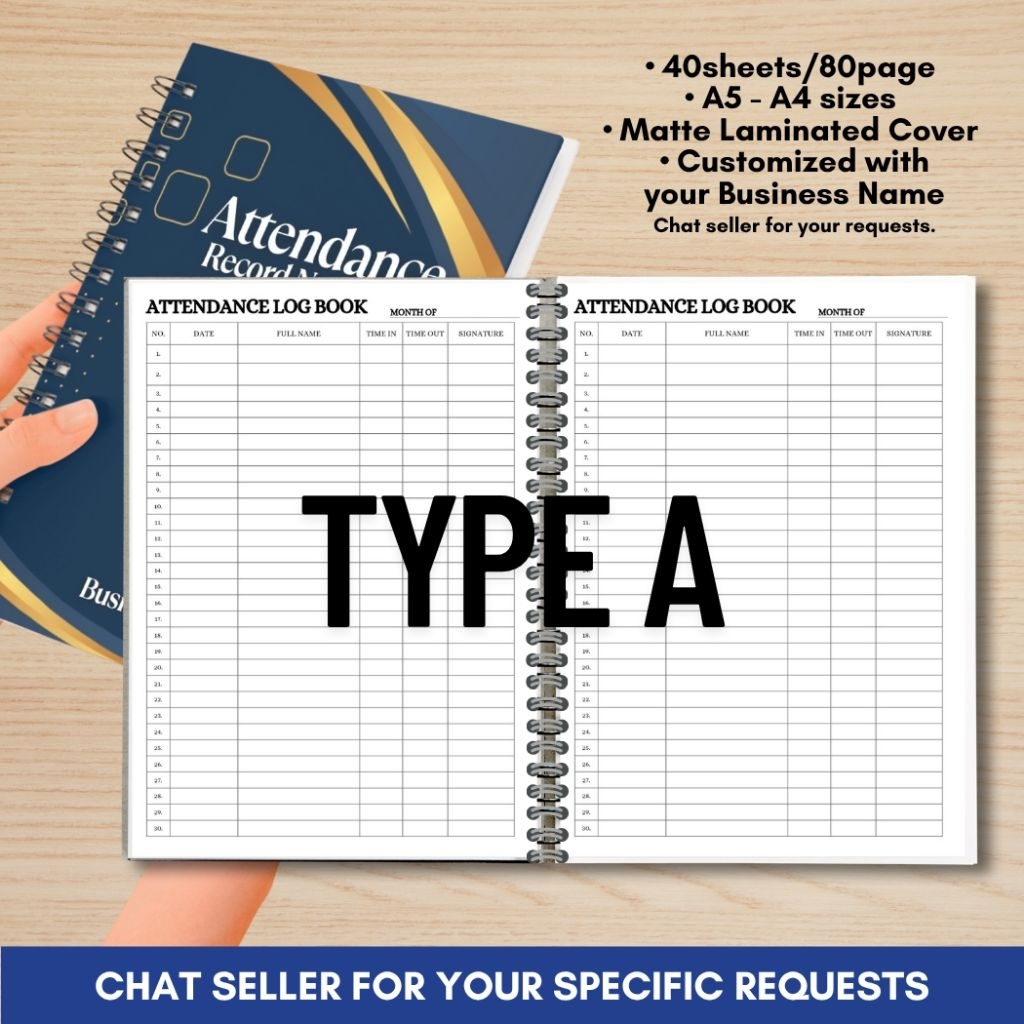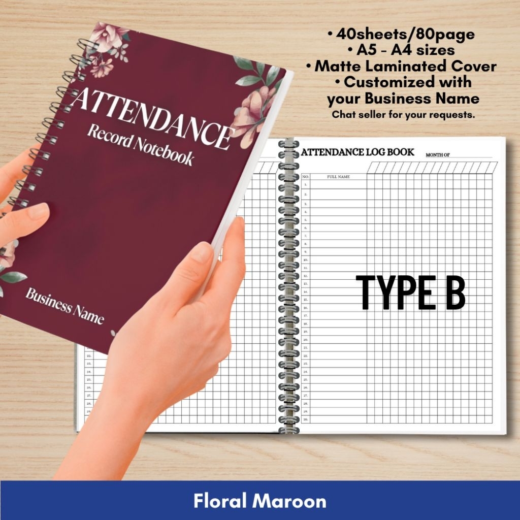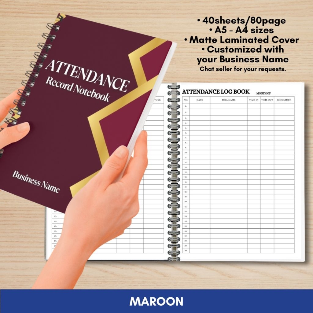 ATTENDANCE RECORD NOTEBOOK for Business/Freelancers A5 and A4 size Wire binded Matte Laminated Cover