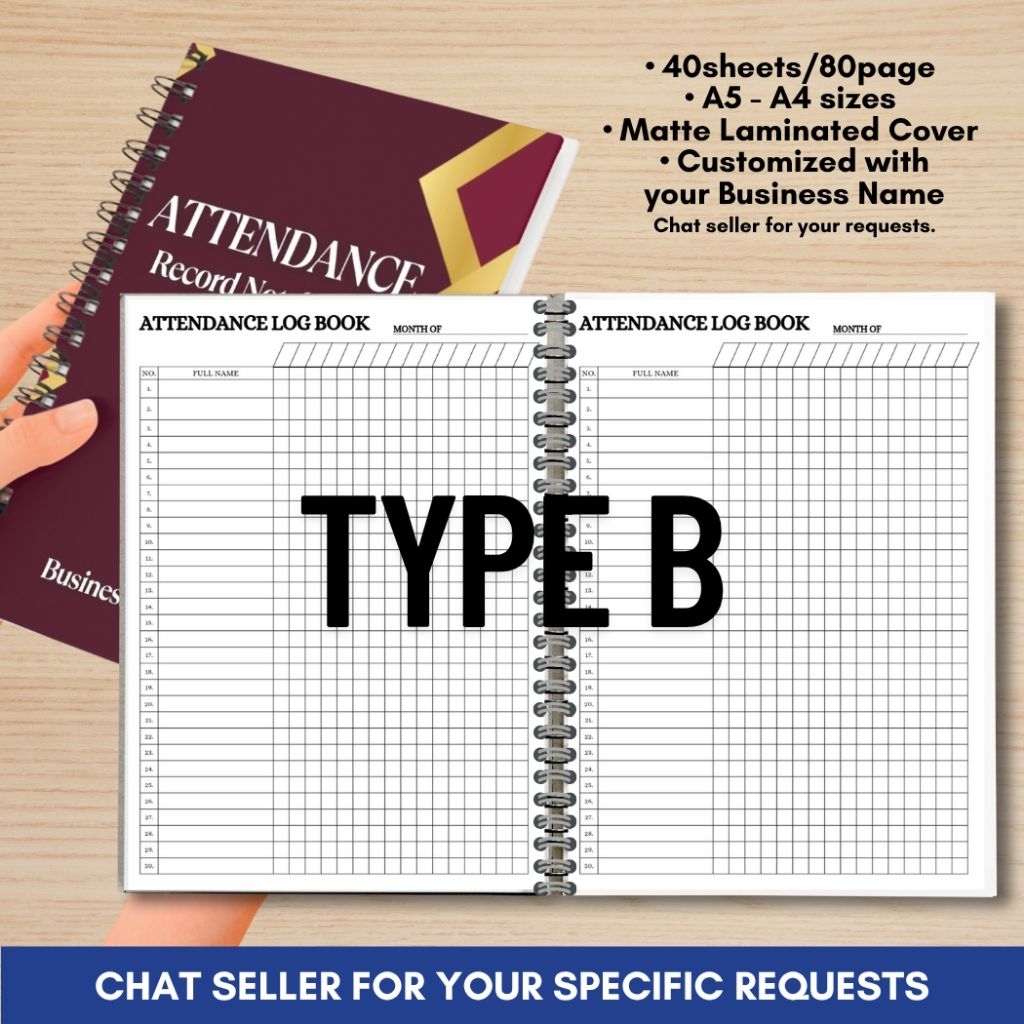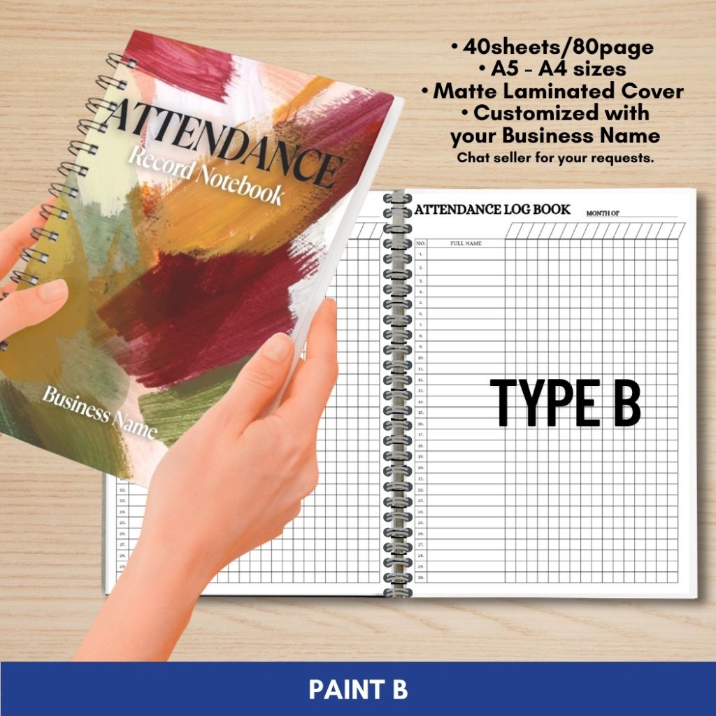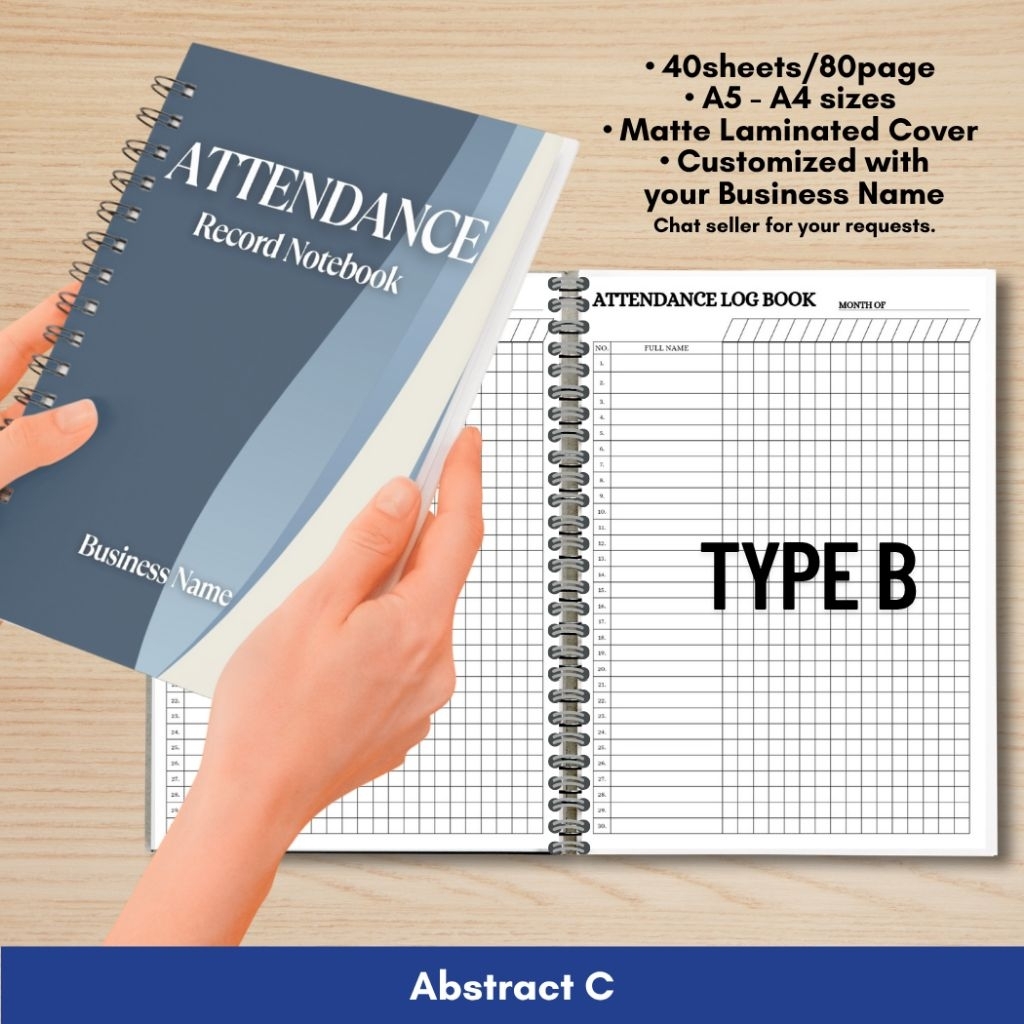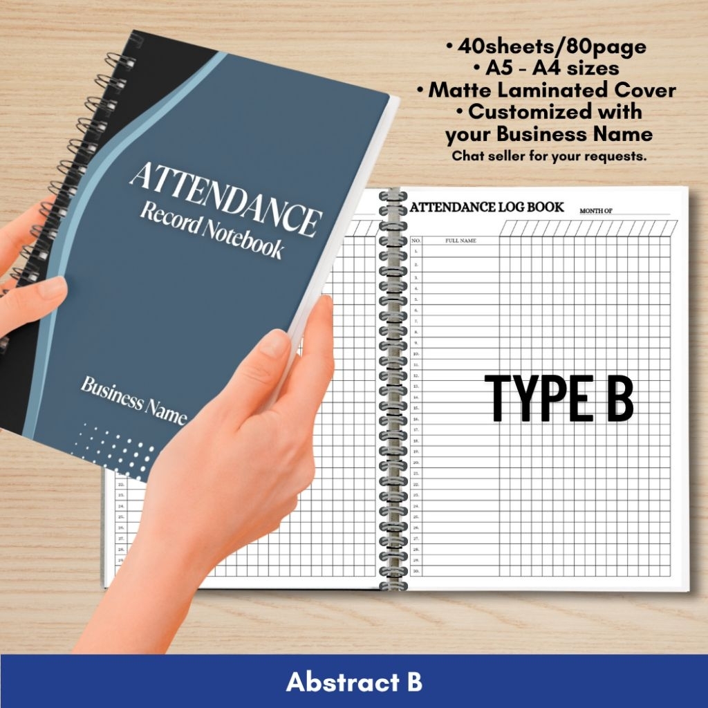 ATTENDANCE RECORD NOTEBOOK for Business/Freelancers A5 and A4 size Wire binded Matte Laminated Cover