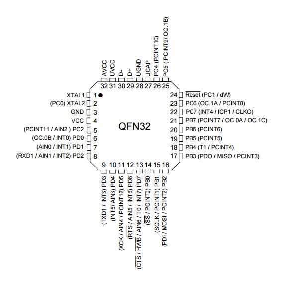 ATmega16U2-MU or ATmega16U2-MUR IC used in Arduino boards Microchip-Atmel microcontroller / USB IC