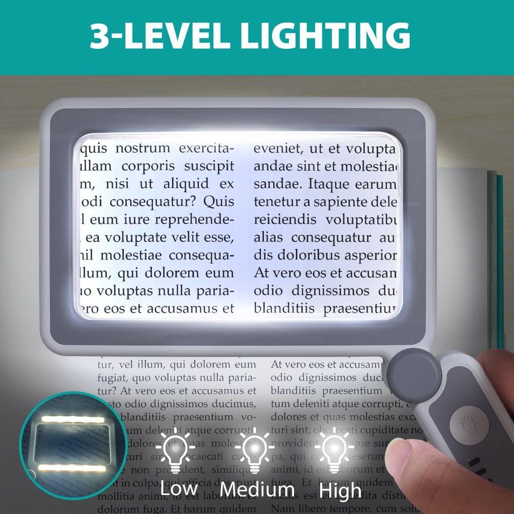 AUGUSTUS Magnifying Glass with Light, Rechargeable 4X Magnification Large Page Magnifier, Small Handheld Square Lightweight 10 LED Reading Magnifier Close Work