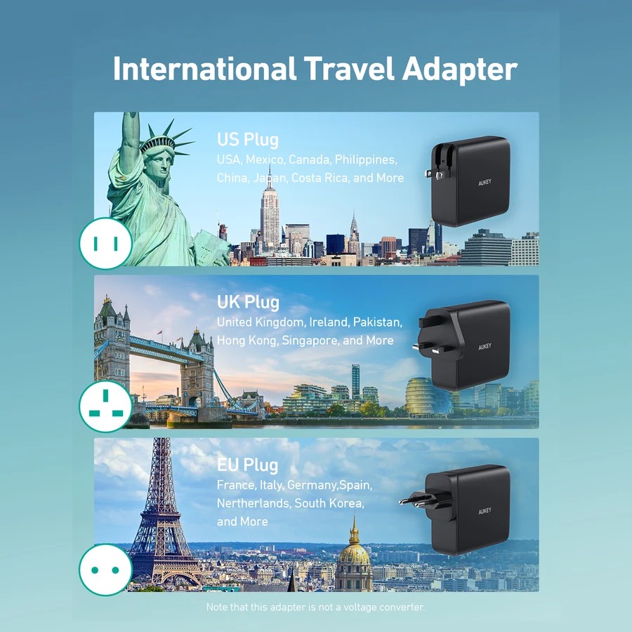 AUKEY PA-PD20 Power Duo 5k Fast Charging Portable & Wall Charger with Interchangeable EU & UK Plugs