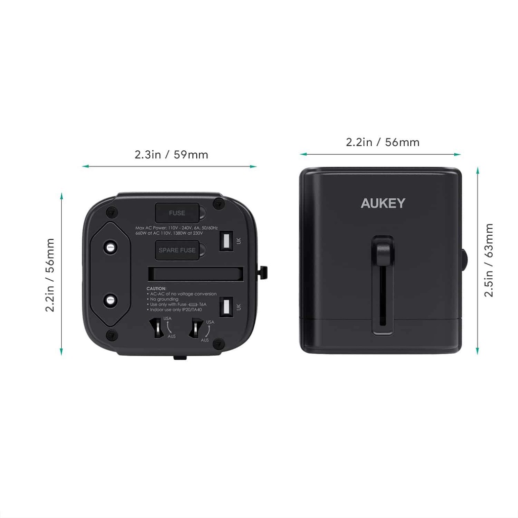 AUKEY PA-TA01 Minima Travel Mate Universal Adapter with USB Ports for Apple Android Vivo Oppo Realme