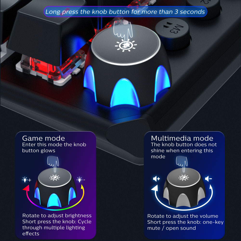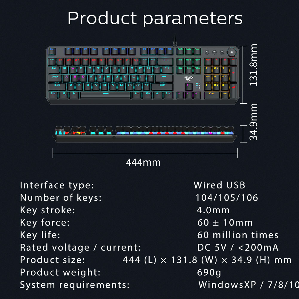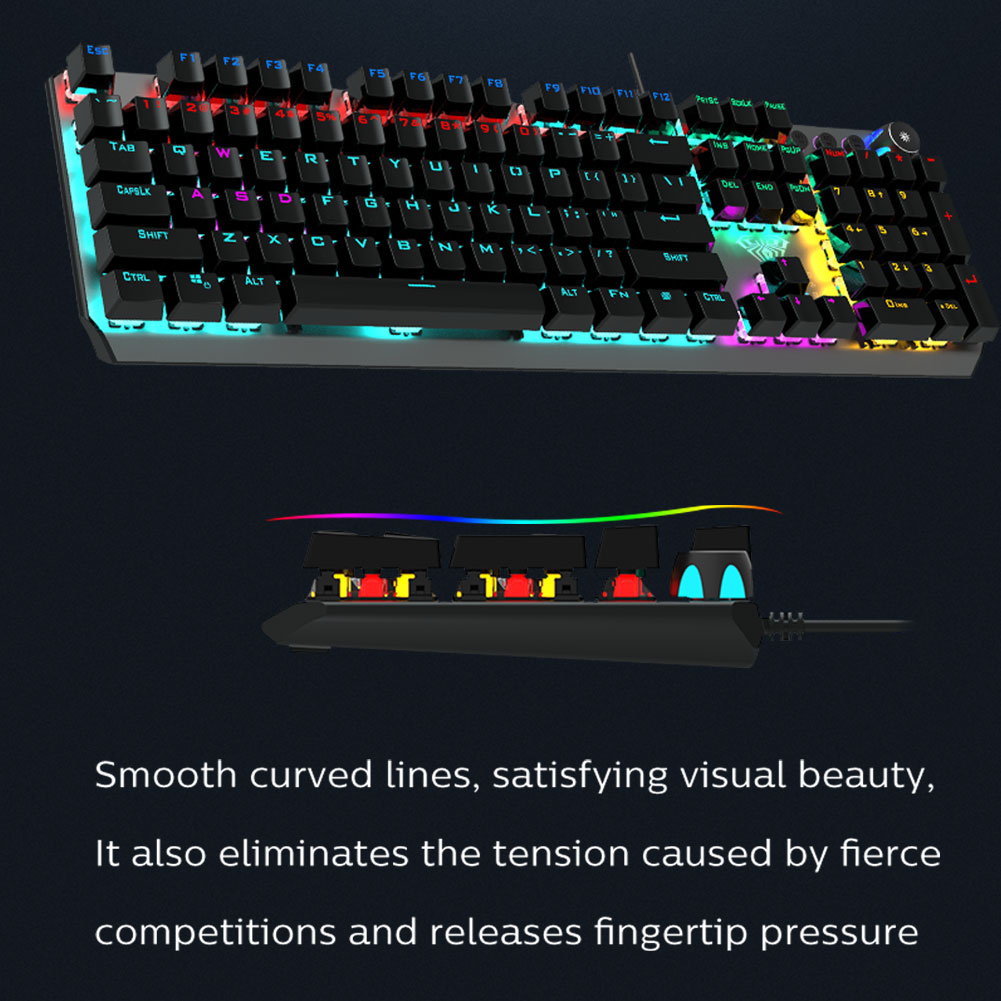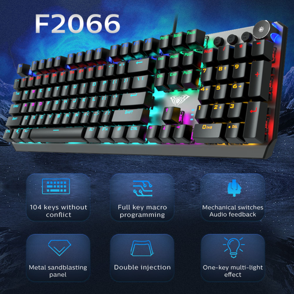 AULA F2066 Gaming Mechanical Keyboard 104 Keys Anti-Ghosting Macro Programming Multimedia Knob for PC Laptop Offical Computer