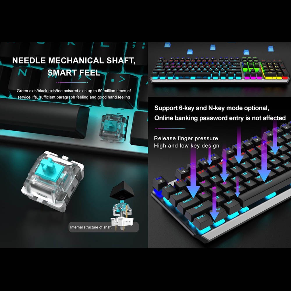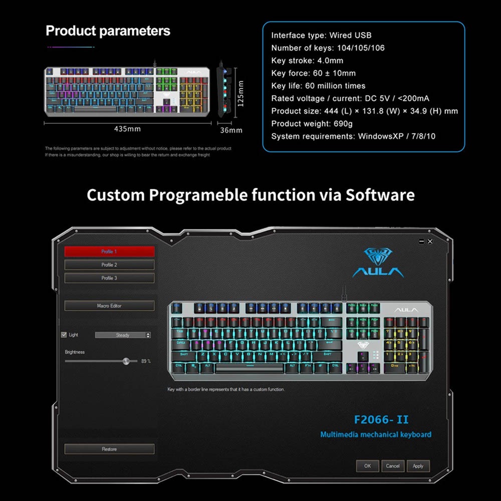 AULA F2066-II True Mechanical Keyboard with Color Backlight Software Control Gaming for Laptop & Com