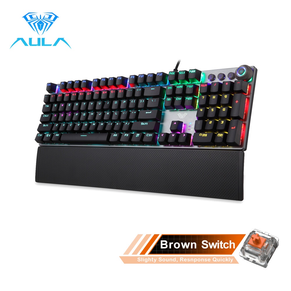 AULA F2088 Gaming Mechanical Keyboard Backlit with Knob Macro Programming Wired Full Keyboard for PC