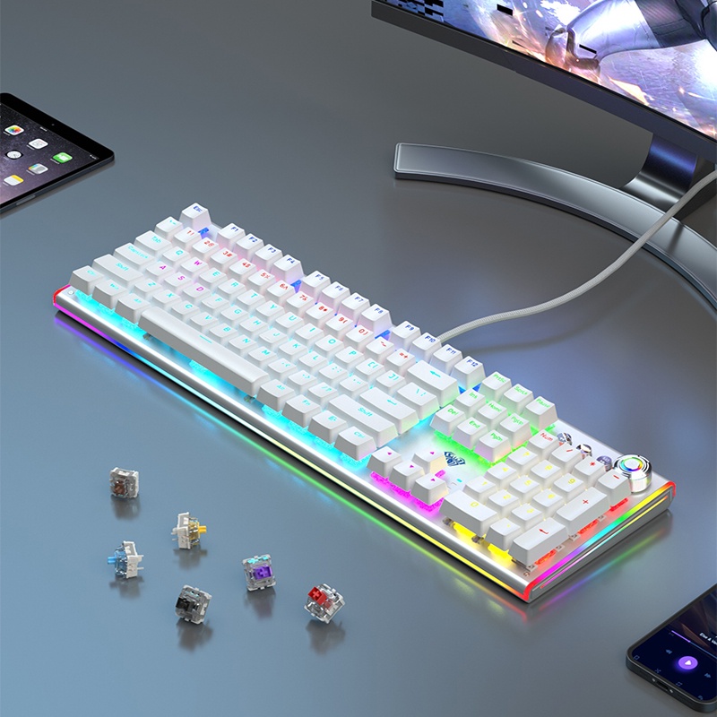 Aula F3020 Wired Hot Swap Gaming Mechanical Keyboard with Mixed Light Office Full Keyboard for PC