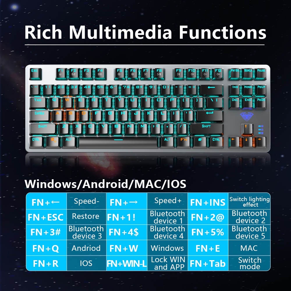 AULA F3287 Wired Mechanical Dual Mode Keyboard | 87-key Gaming Keyboard LED Cool Backlight