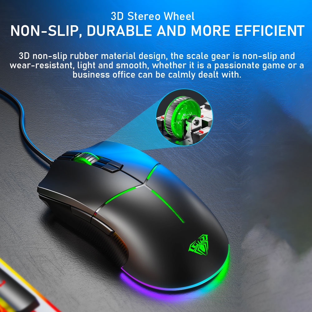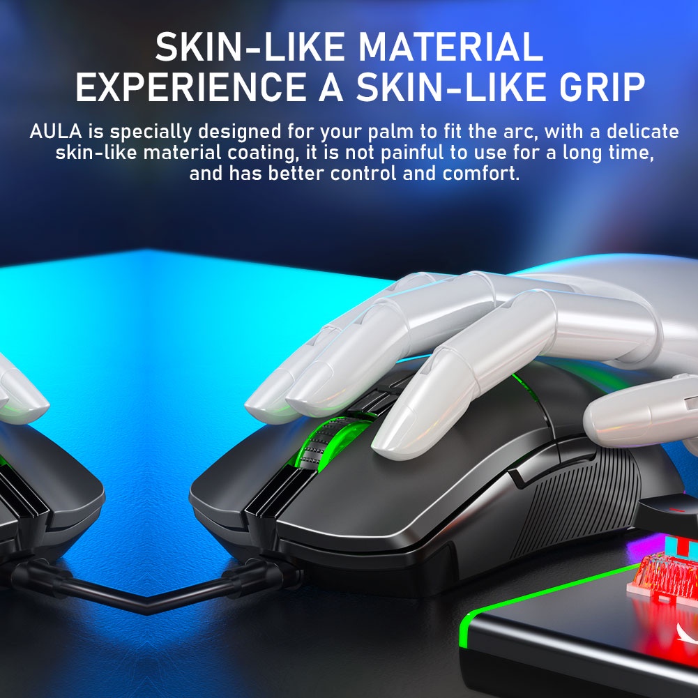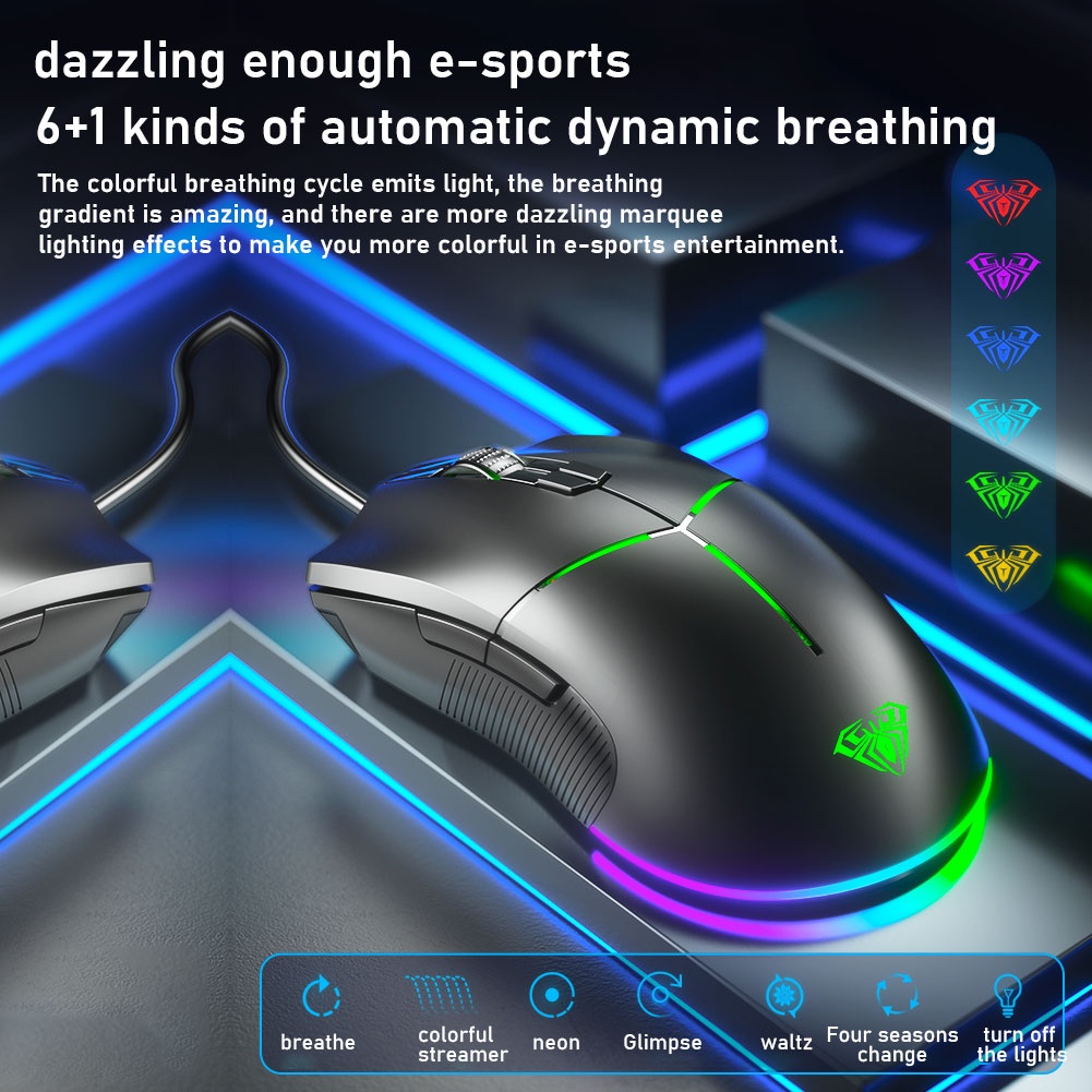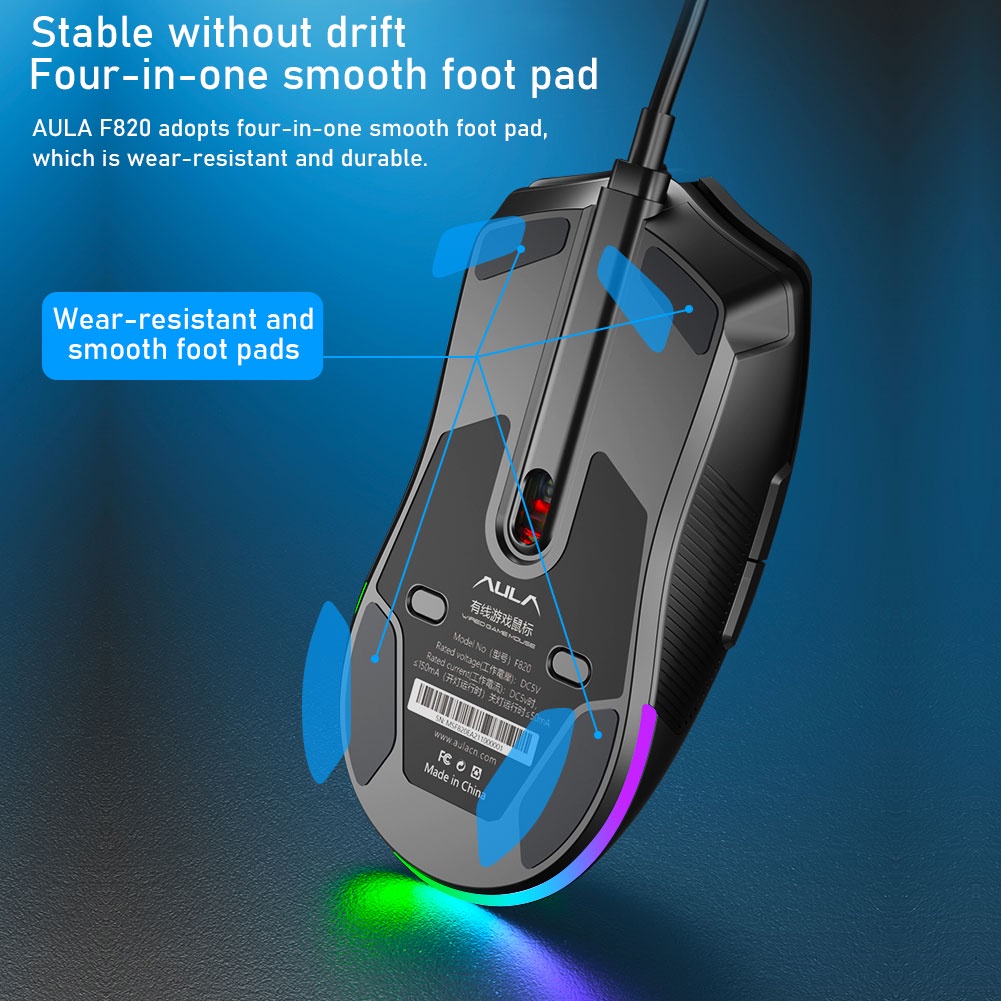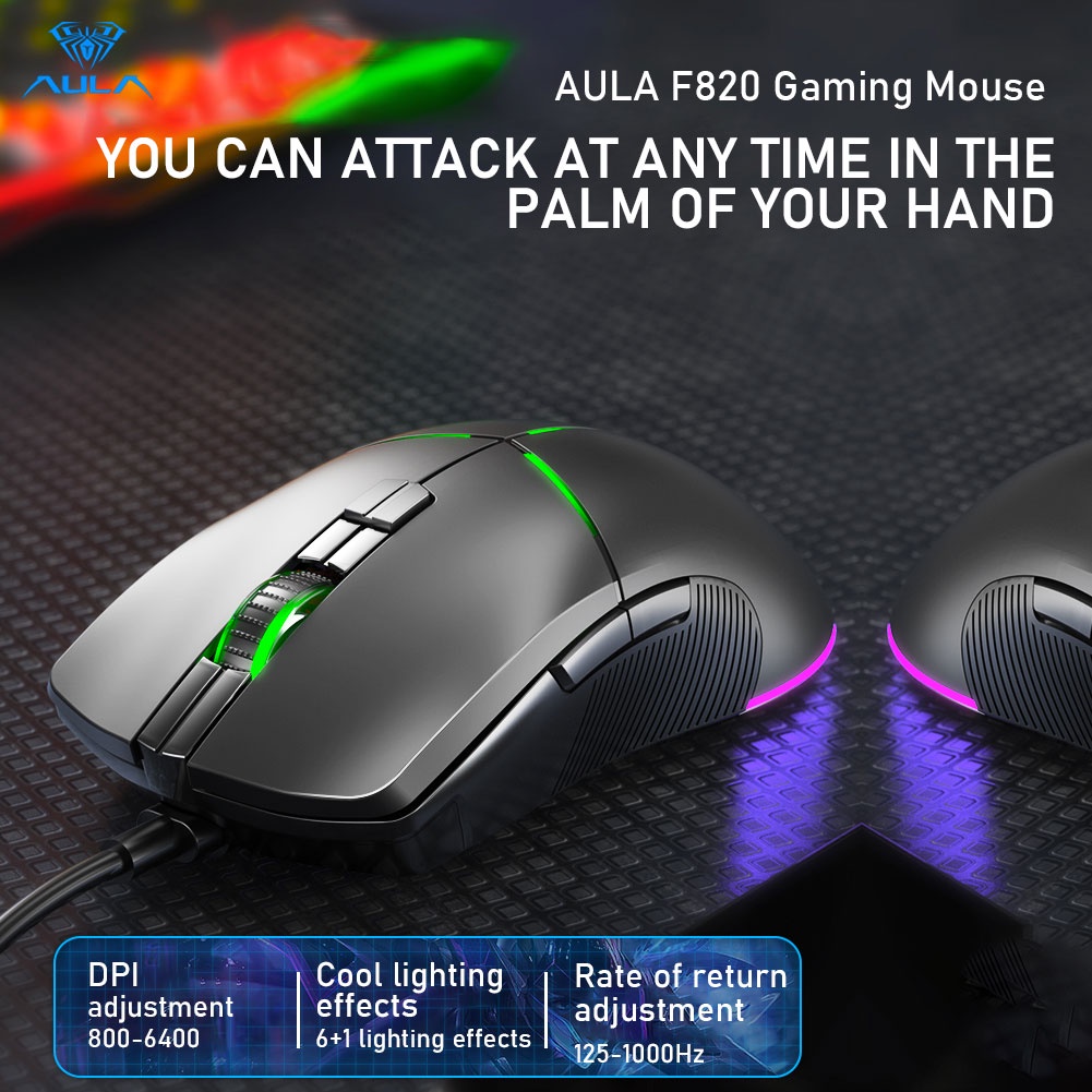 AULA F820 Gaming Mouse 6 Gear Dpi Ergonomic Usb Optical Multiple Backlight Modes 6+1 Breathing Color For Pc